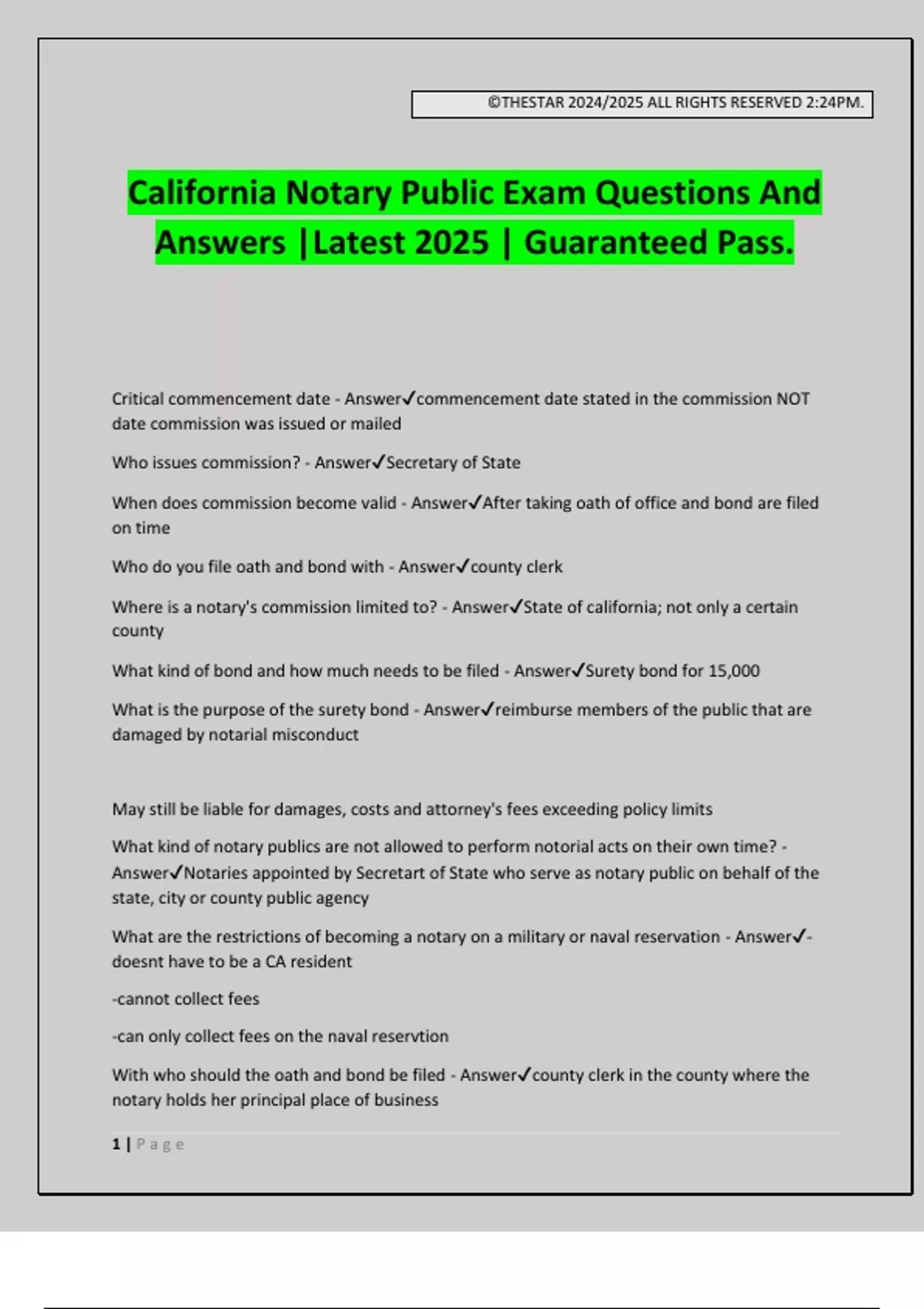 Where is a notary's commission limited to? - Answer✔State of california; not only a certain