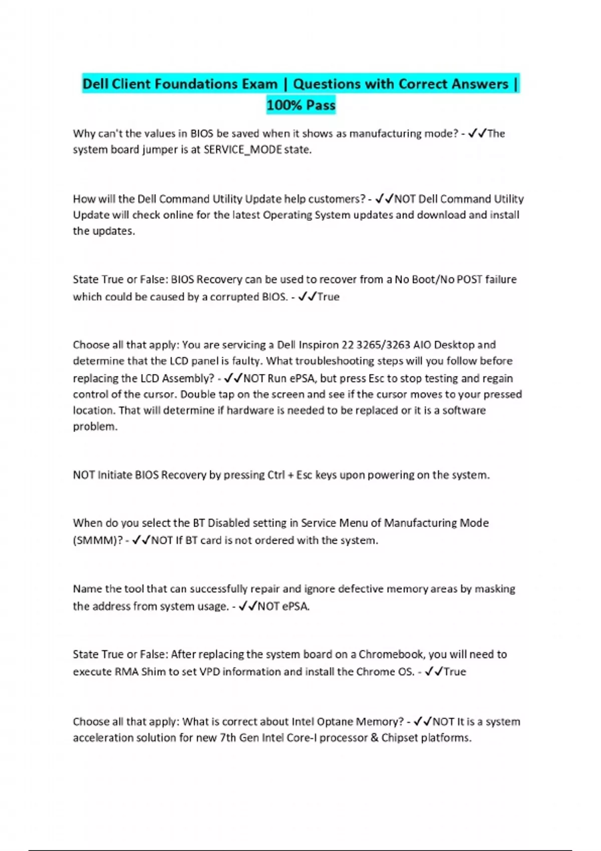 Dell Client Foundations Exam | Questions with Correct Answers | 100% Pass