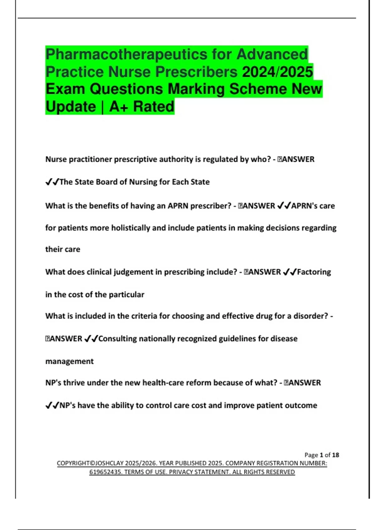 JOSHCLAY EXAM HUB, WELCOME ALL, HERE YOU WILL FIND ALL DOCUMENTS & PACKAGE DEAL YOU NEED FOR YOUR SCHOOL WORK OFFERED BY SELLER JOSHCLAY