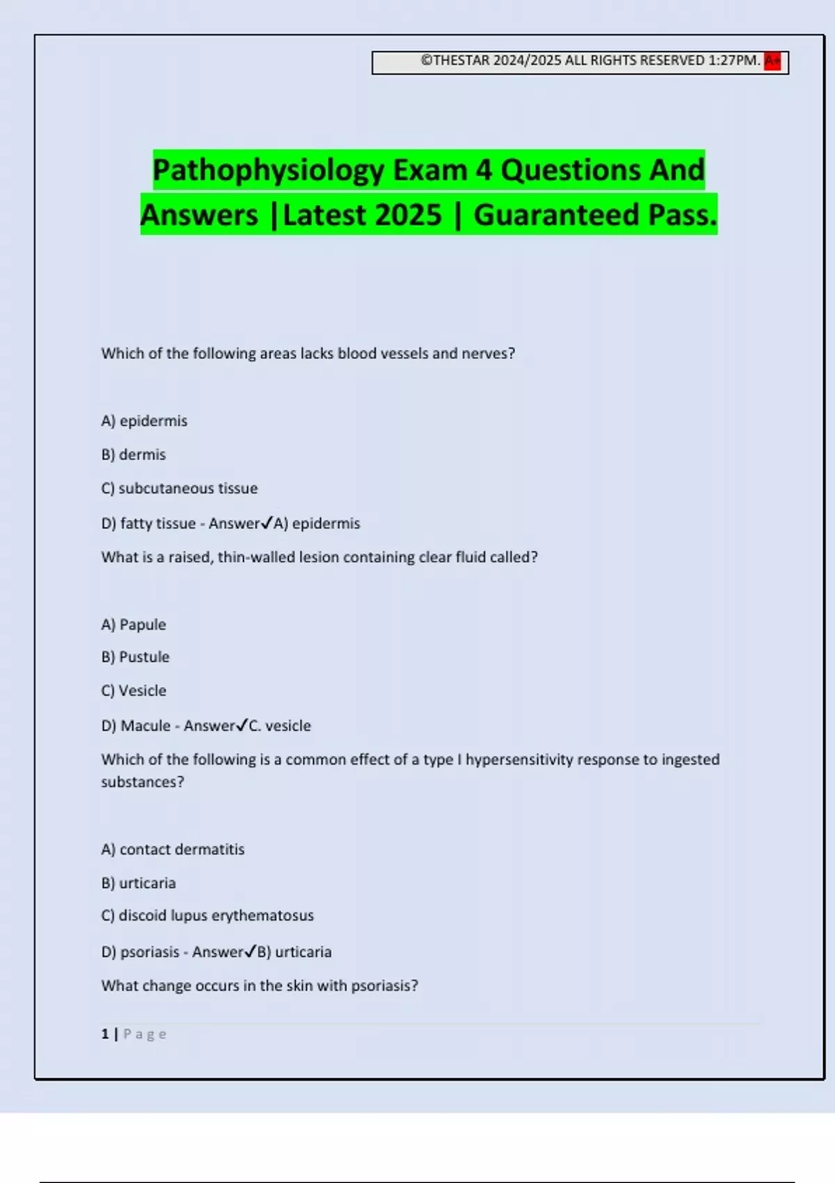D) psoriasis - Answer✔B) urticaria