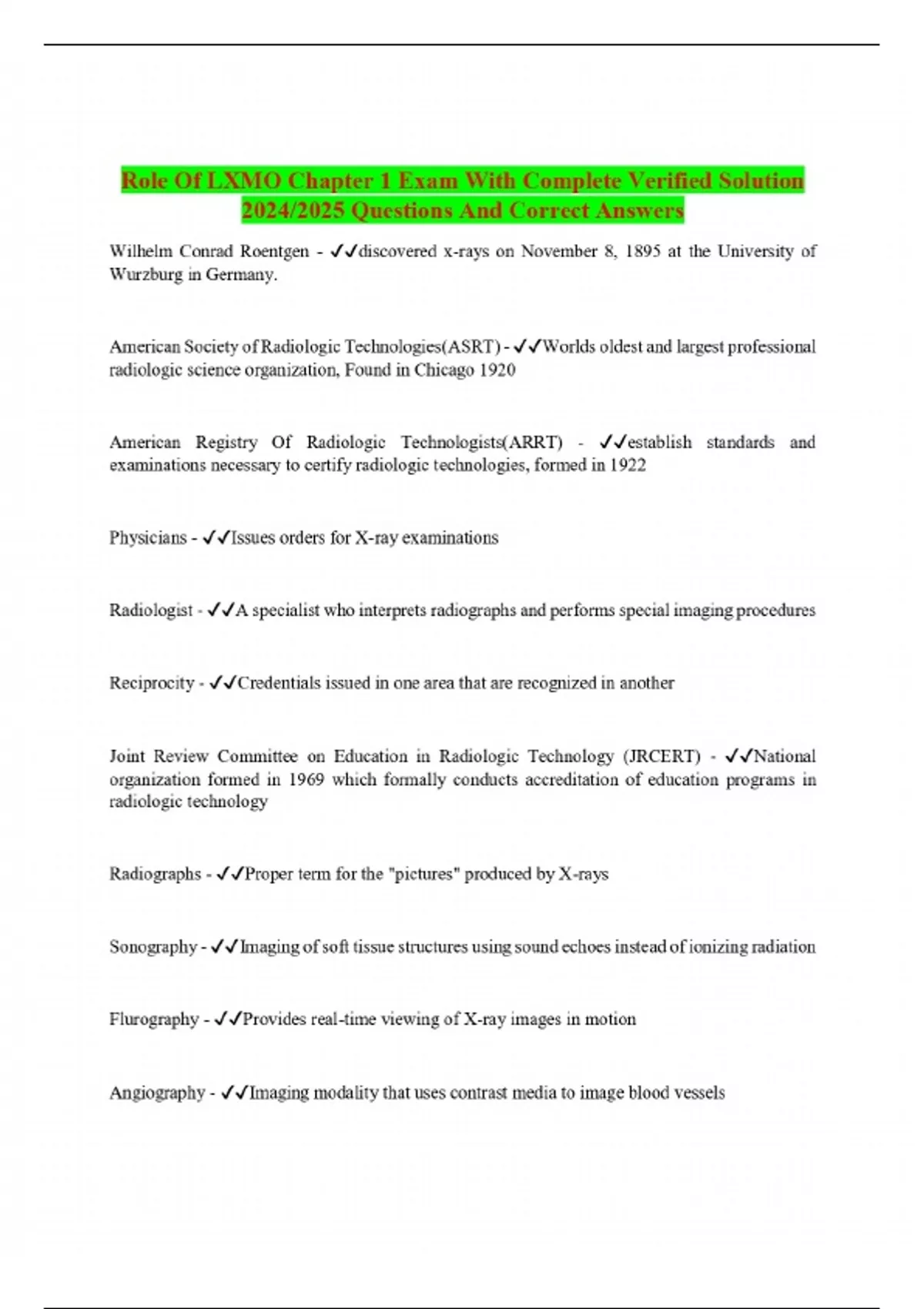 Role Of LXMO Chapter 1 Exam With Complete Verified Solution 2024/2025 Questions And Correct Answers