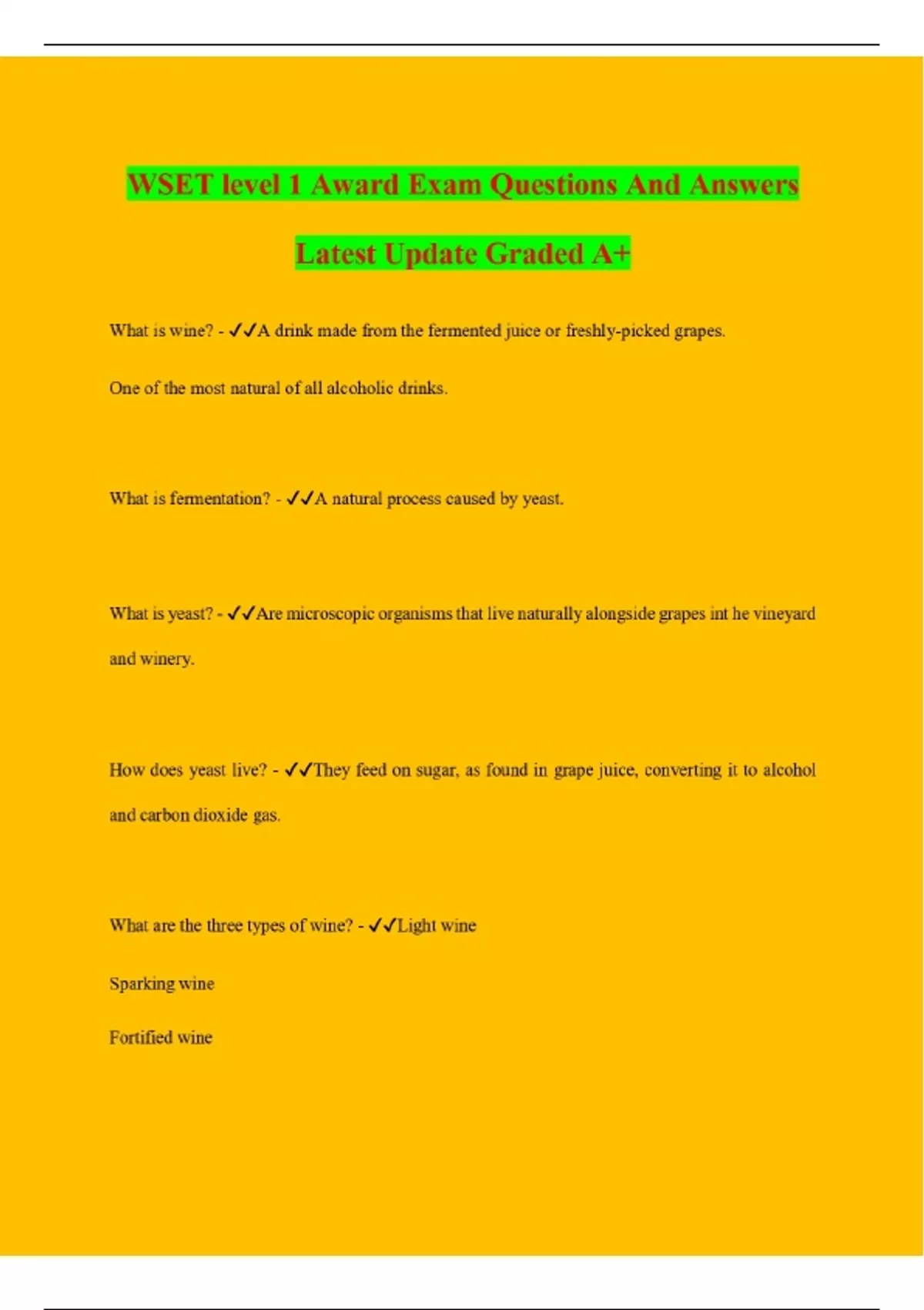 WSET level 1 Award Exam Questions And Answers Latest Update Graded A+