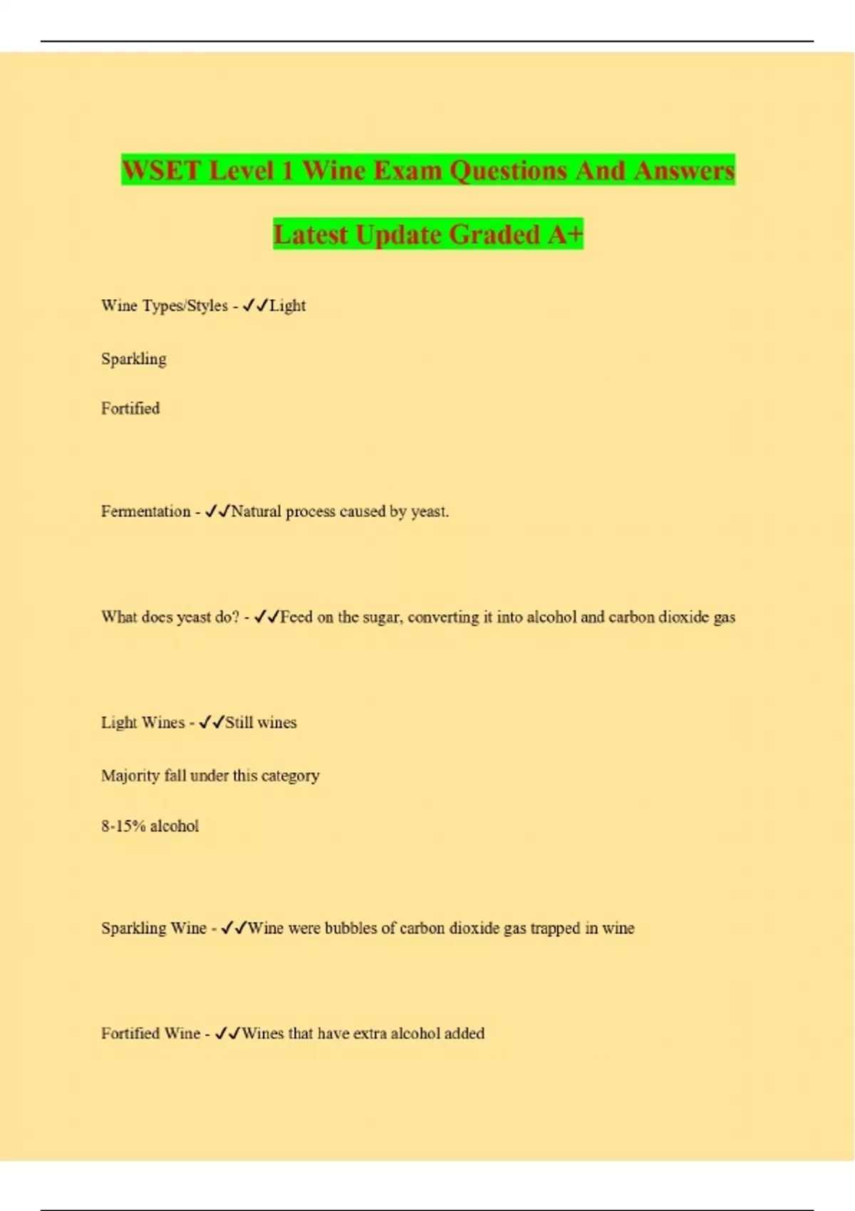 WSET Level 1 Wine Exam Questions And Answers Latest Update Graded A+
