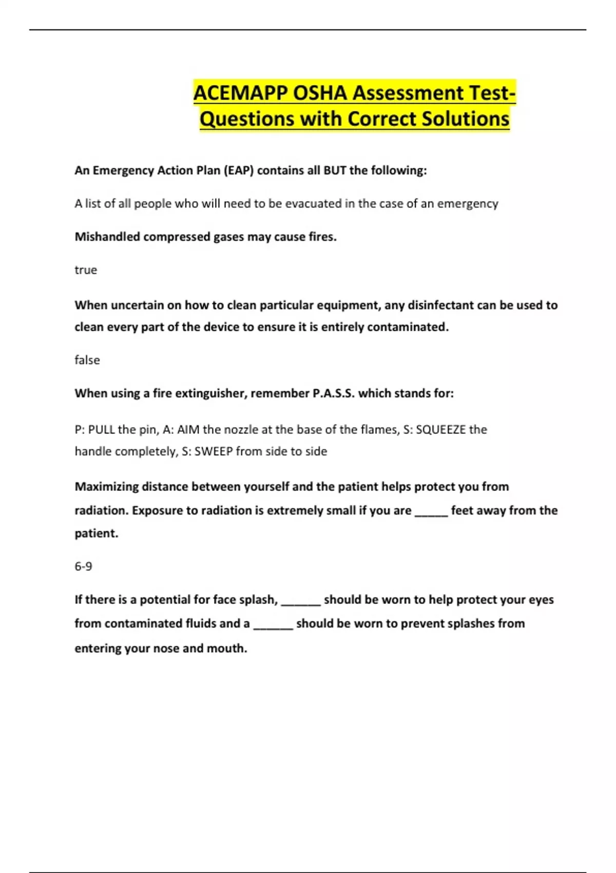 ACEMAPP OSHA Assessment Test- Questions with Correct Solutions