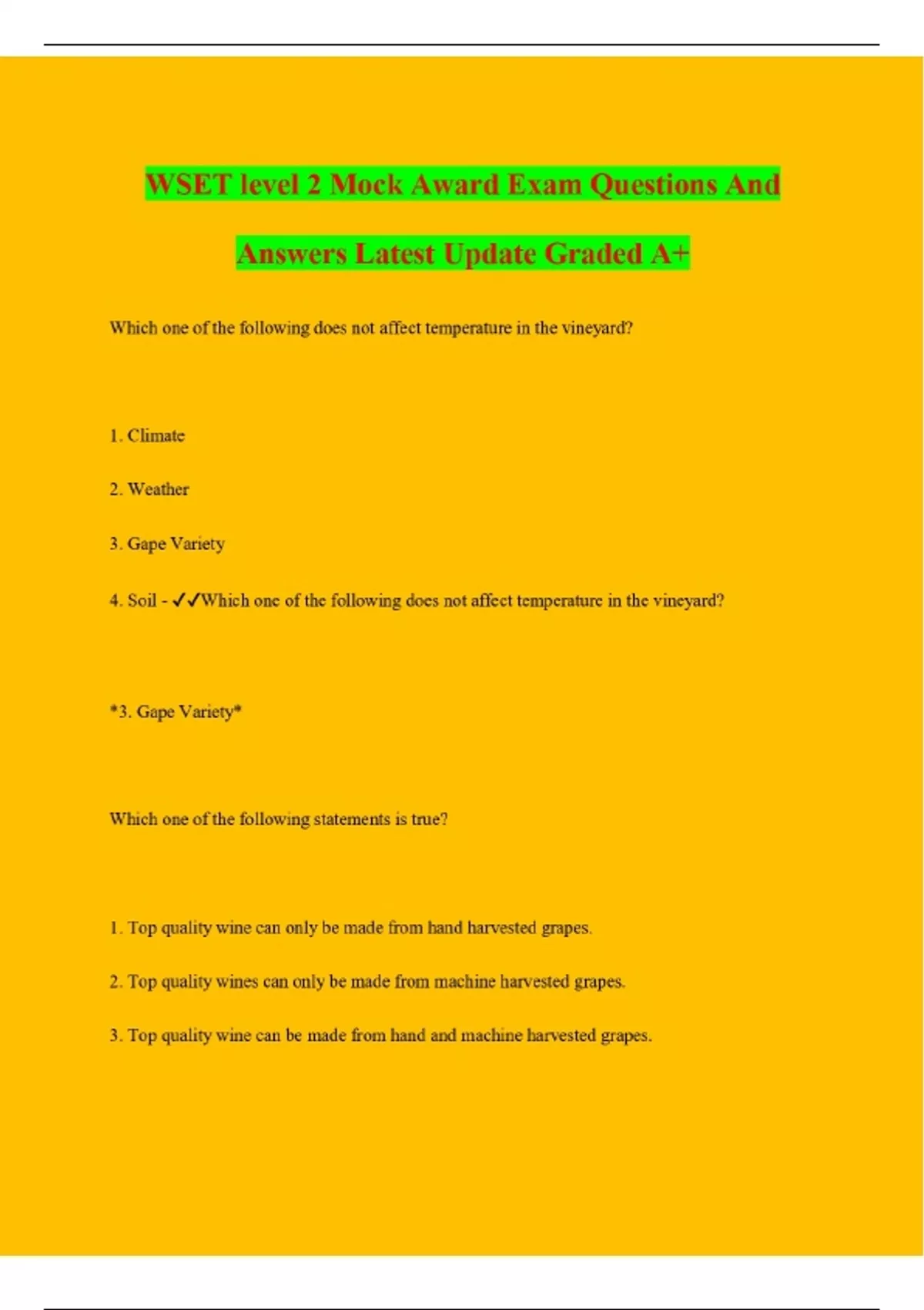 WSET Bundled Exam with 100% correct answers