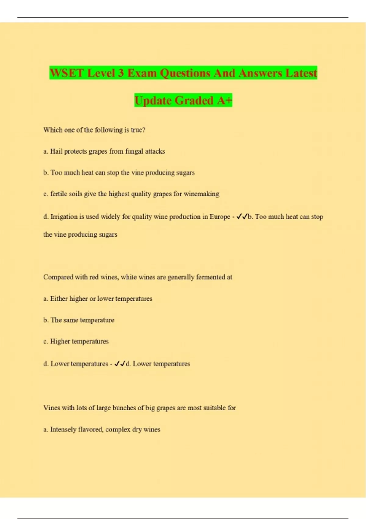 wset level 3 exam questions and answers latest upd