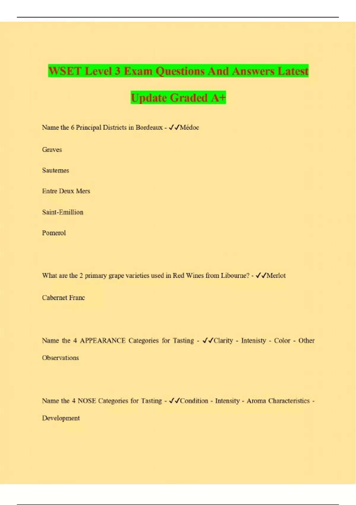 wset level 3 exam questions and answers latest upd
