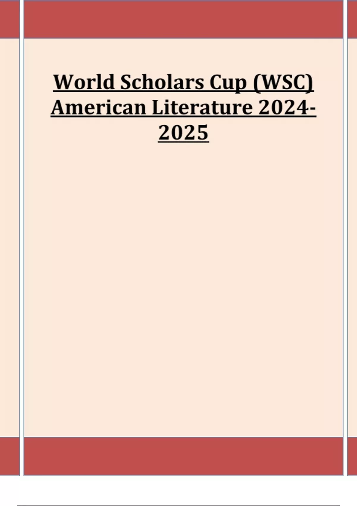 World Scholars Cup (WSC) American Literature 2024- 2025