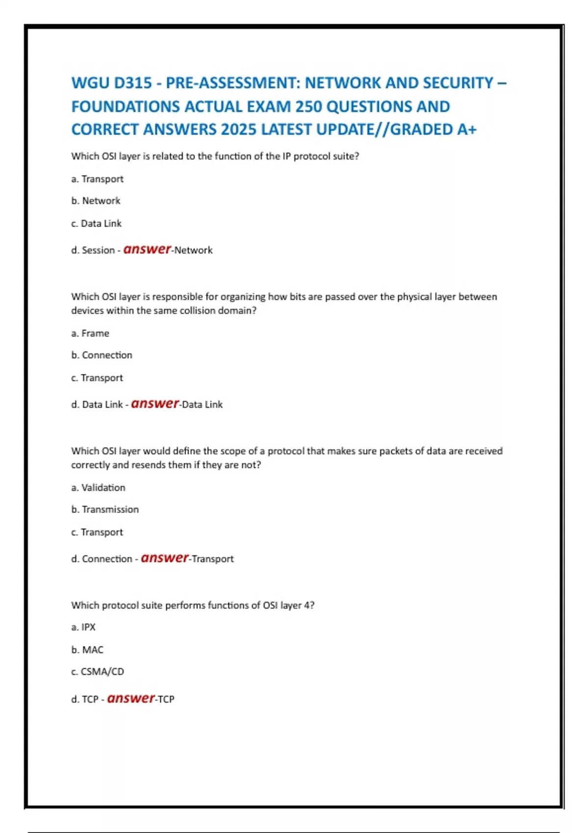 WGU D315 - PRE-ASSESSMENT: NETWORK AND SECURITY – FOUNDATIONS ACTUAL EXAM 250 QUESTIONS AND CORRECT ANSWERS 2025 LATEST UPDATE//GRADED A+ WGU D315 - PRE-ASSESSMENT: NETWORK AND SECURITY – FOUNDATIONS ACTUAL EXAM 250 QUESTIONS AND CORRECT ANSWERS 2025 LATEST UPDATE//GRADED A+