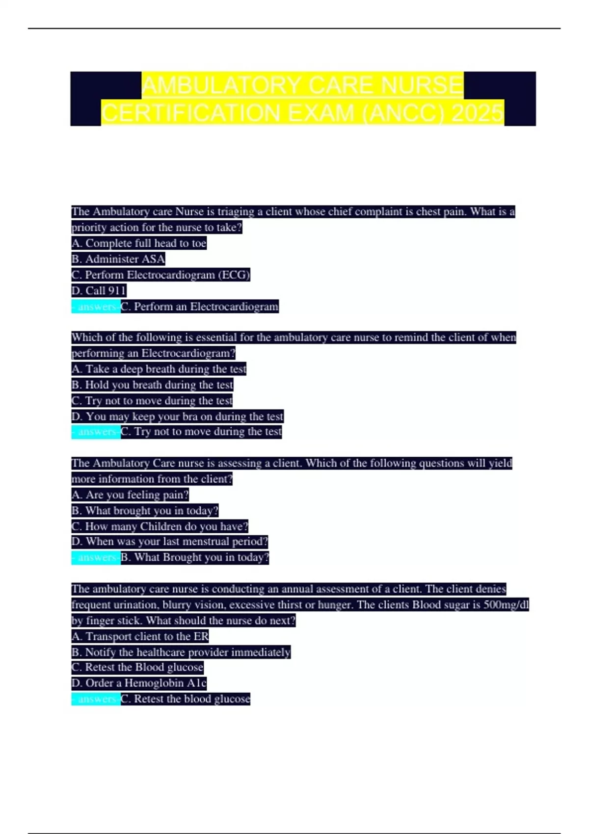 Ambulatory Care Nurse Certification Exam (ANCC) 2025: Comprehensive Practice Questions and Study Guide Solved grade A+