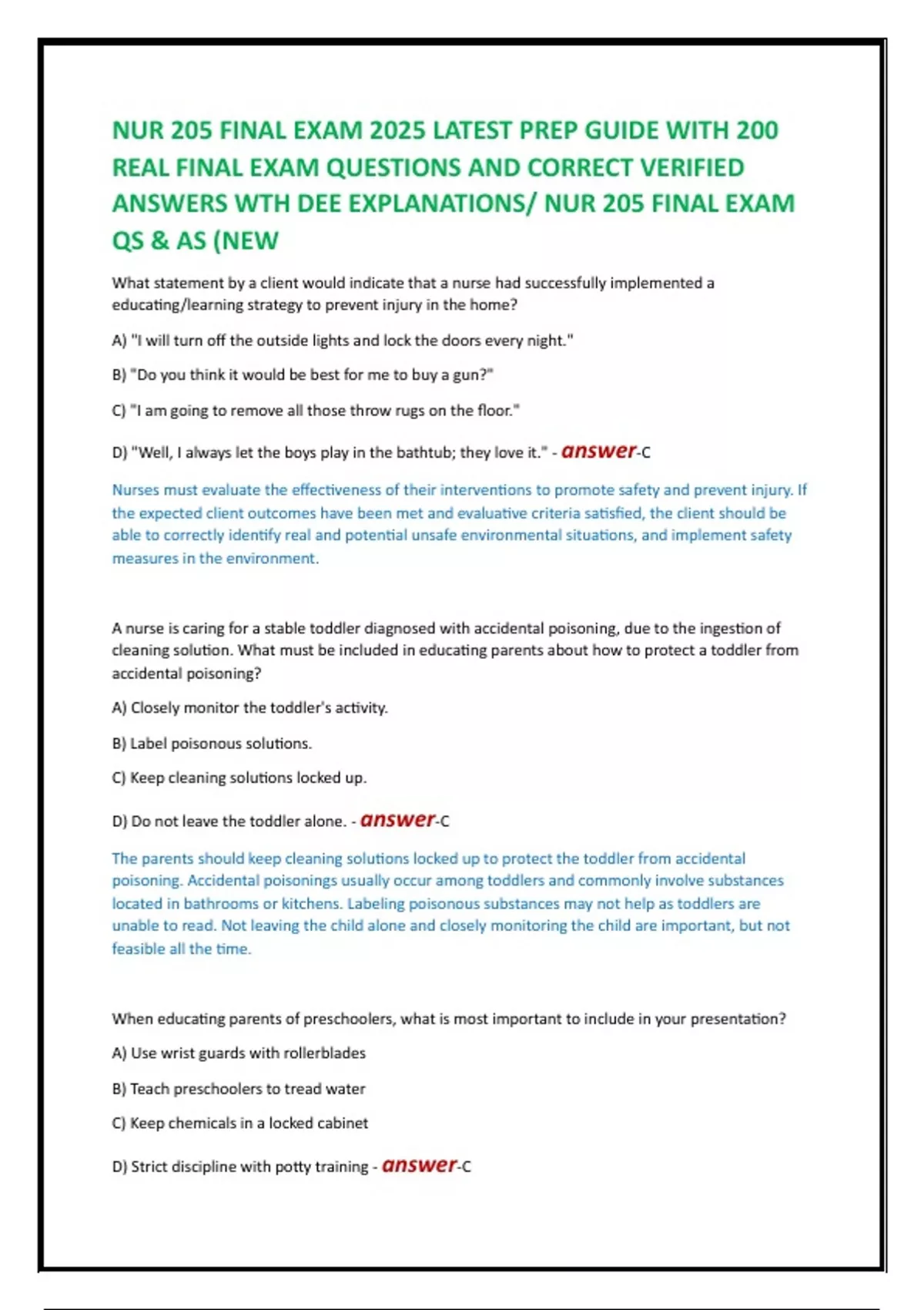 ANSWERS WTH DEE EXPLANATIONS/ NUR 205 FINAL EXAM