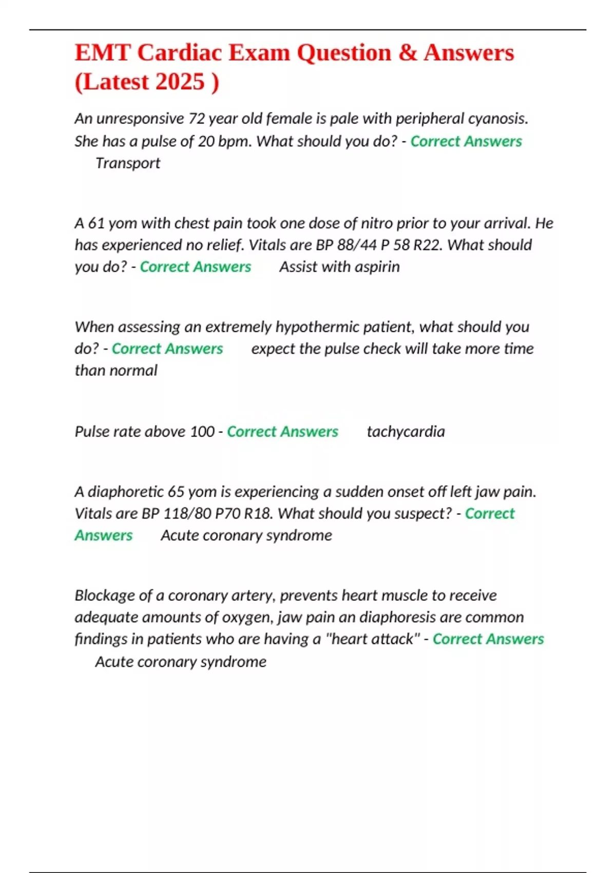 Pulse rate above 100 - Correct Answers ✅tachycardia