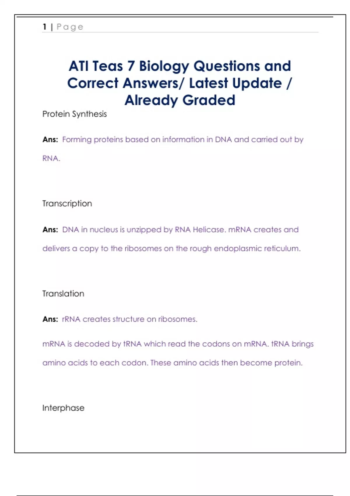 ATI Teas 7 Biology Questions and Correct Answers/ Latest Update / Already Graded