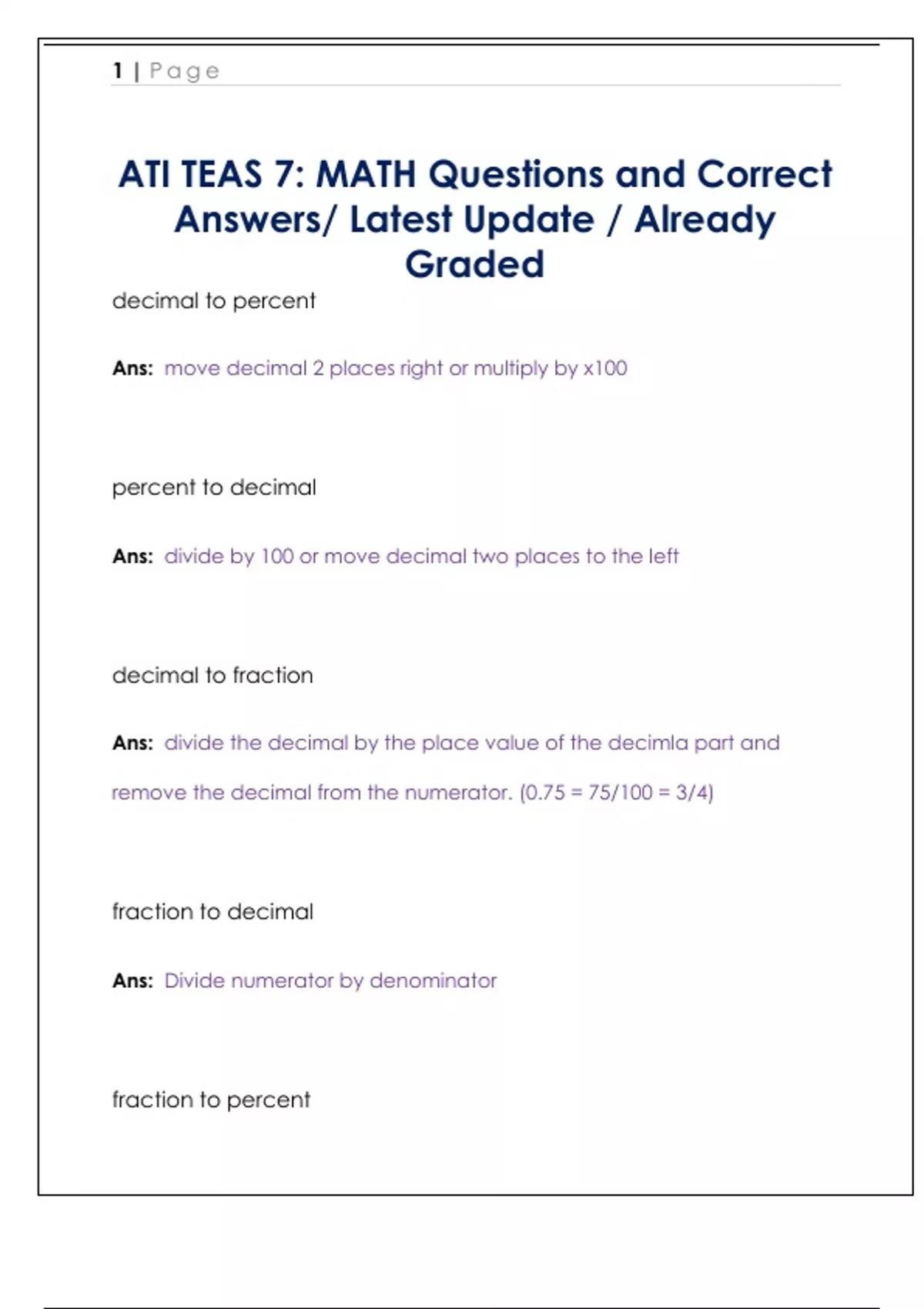 ATI TEAS 7: MATH Questions and Correct Answers/ Latest Update / Already Graded