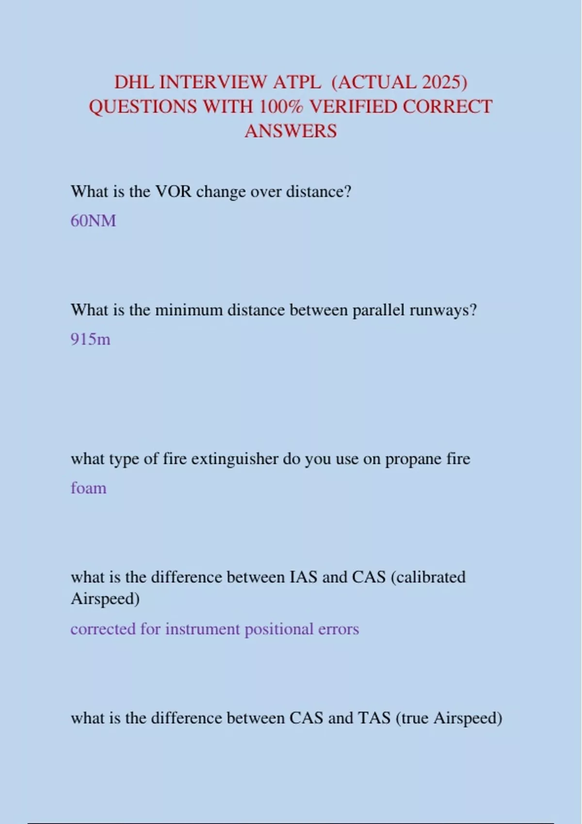 DHL INTERVIEW ATPL (ACTUAL 2025) QUESTIONS WITH 100% VERIFIED CORRECT ANSWERS