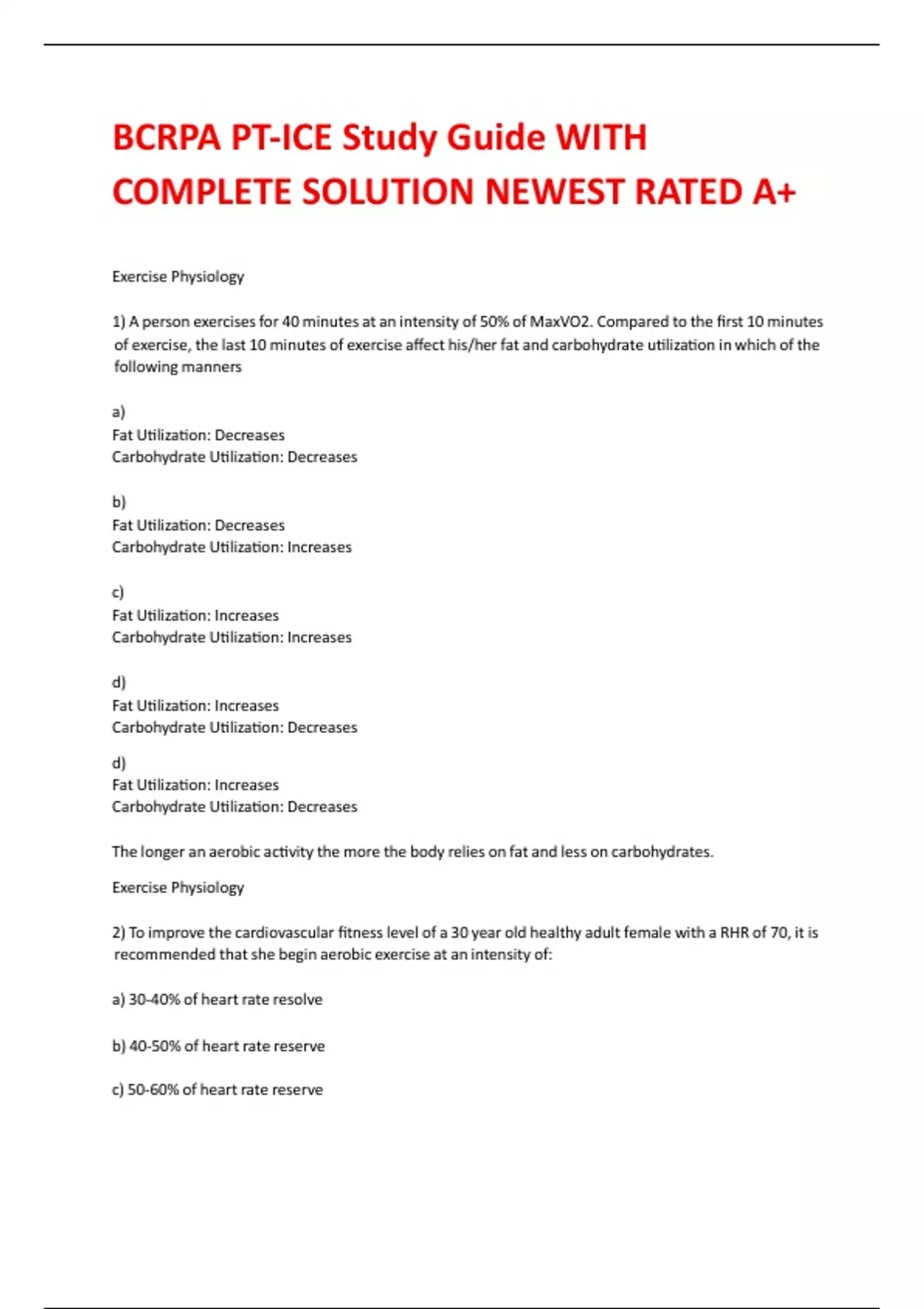1) A person exercises for 40 minutes at an intensity of 50% of MaxVO2. Compared to the first 10 minutes
