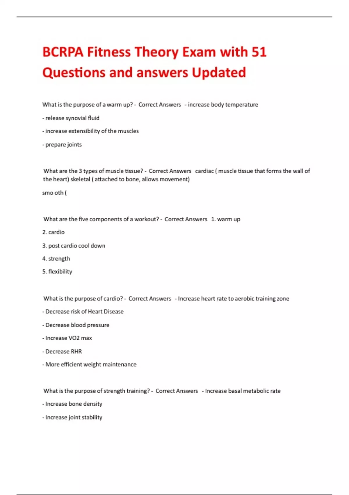 BCRPA Fitness Theory Exam with 51