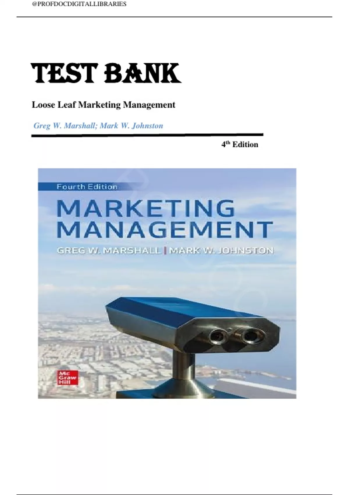 TEST BANK FOR Loose Leaf Marketing Management 4th Edition by Greg W. Marshall & Mark W. Johnston , ISBN: 9781264155385 || Complete Guide A+