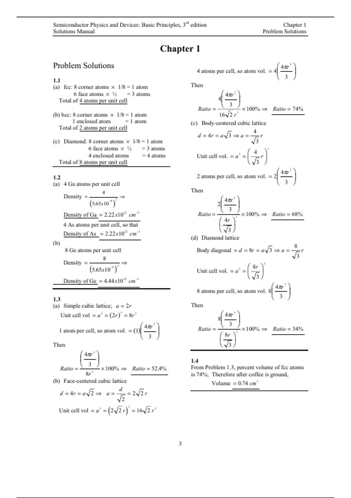 Semiconductor Physics and Devices: Basic Principles, 3rd edition {Complete Solution Manual on all Chapters).