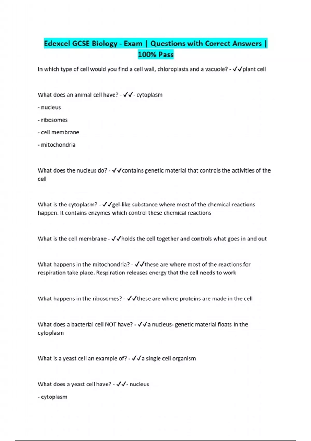 Edexcel GCSE Biology - Exam | Questions with Correct Answers | 100% Pass