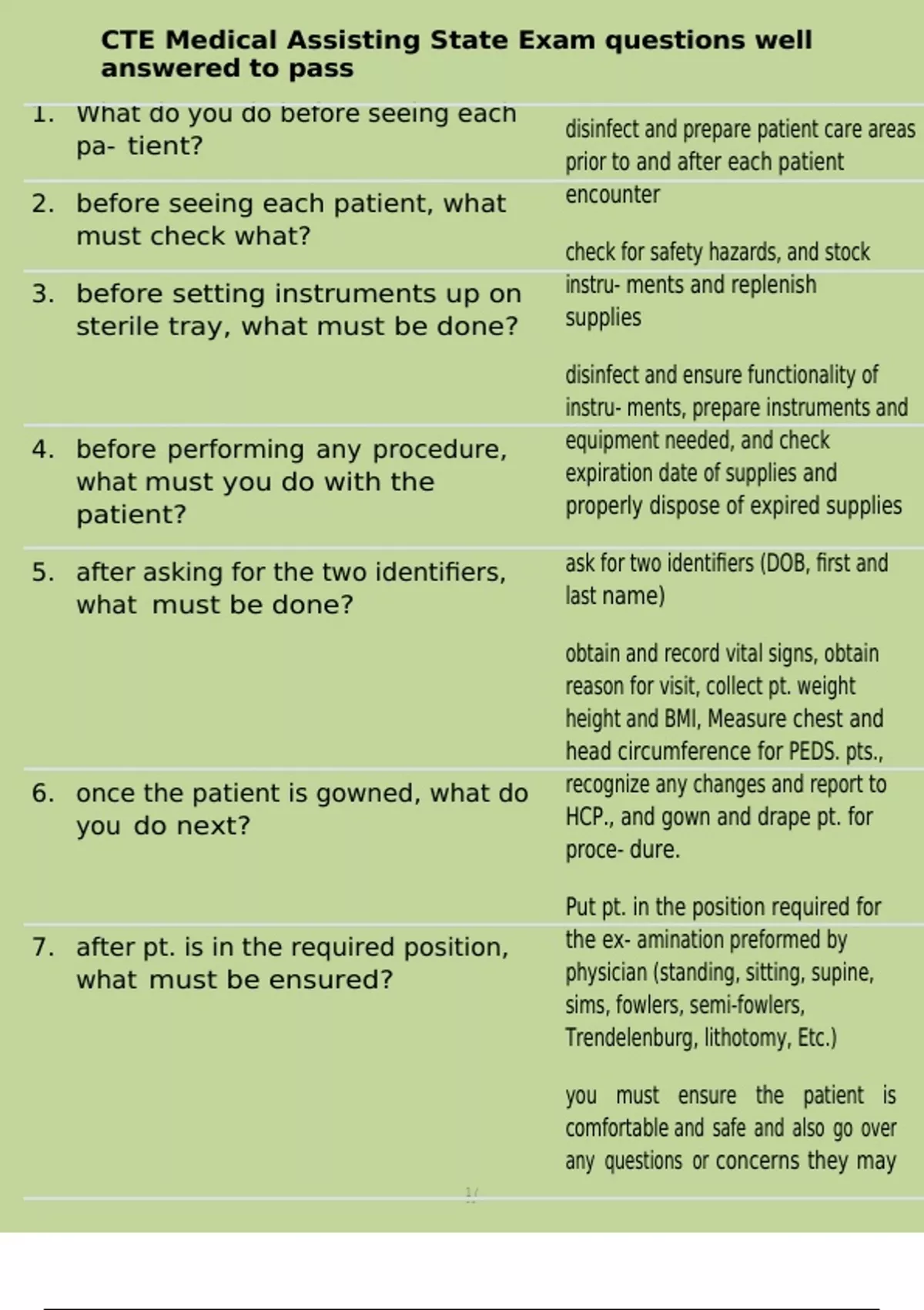 , CTE Medical Assisting State Exam questions well