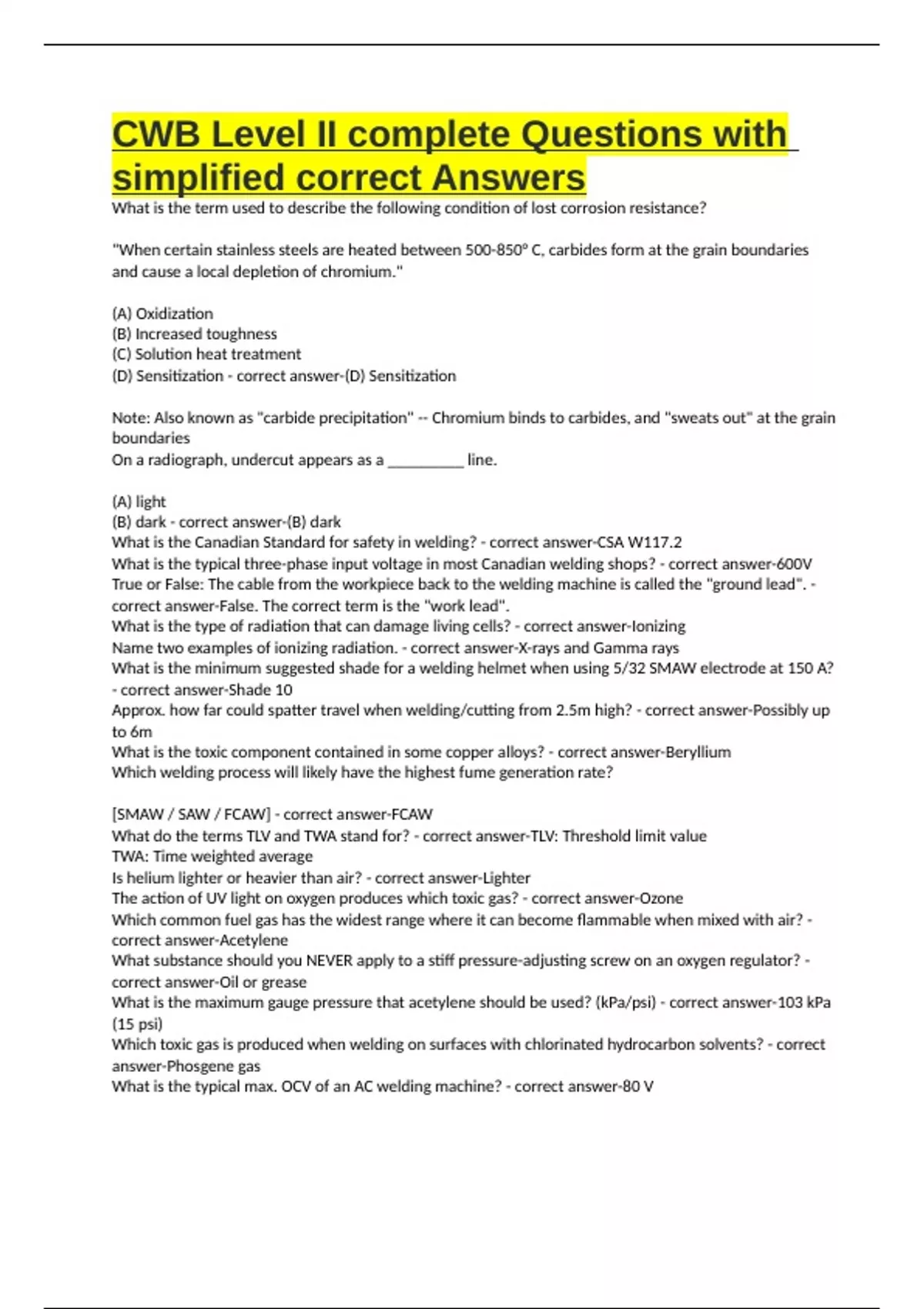 What is the Canadian Standard for safety in welding? - correct answer-CSA W117.2