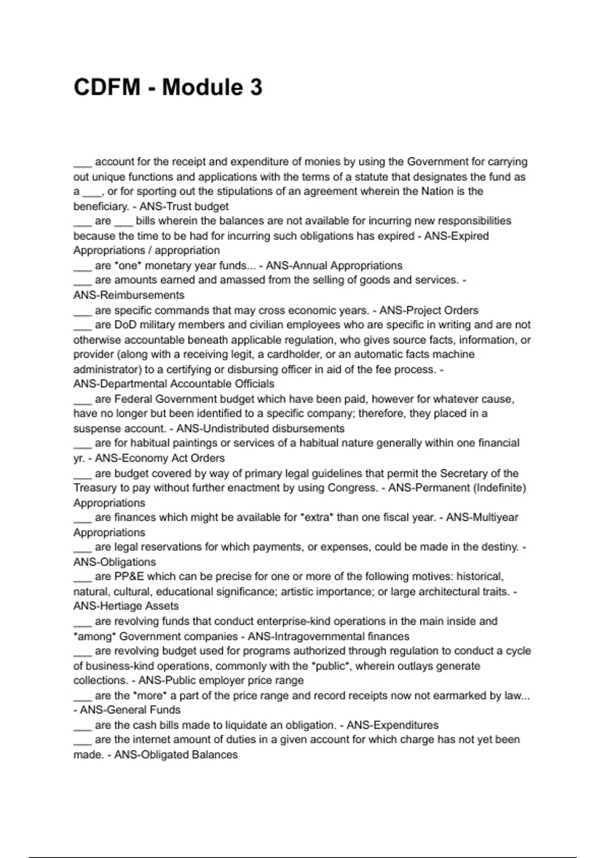 ___ are *one* monetary year funds... - ANS-Annual Appropriations