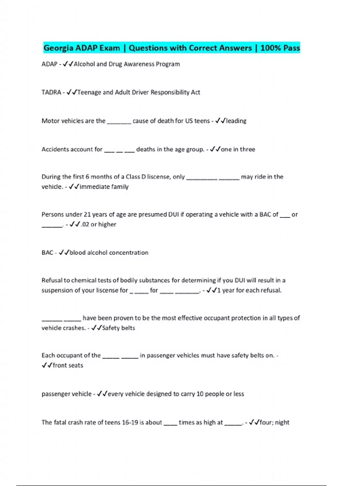 Georgia ADAP Exam | Questions with Correct Answers | 100% Pass