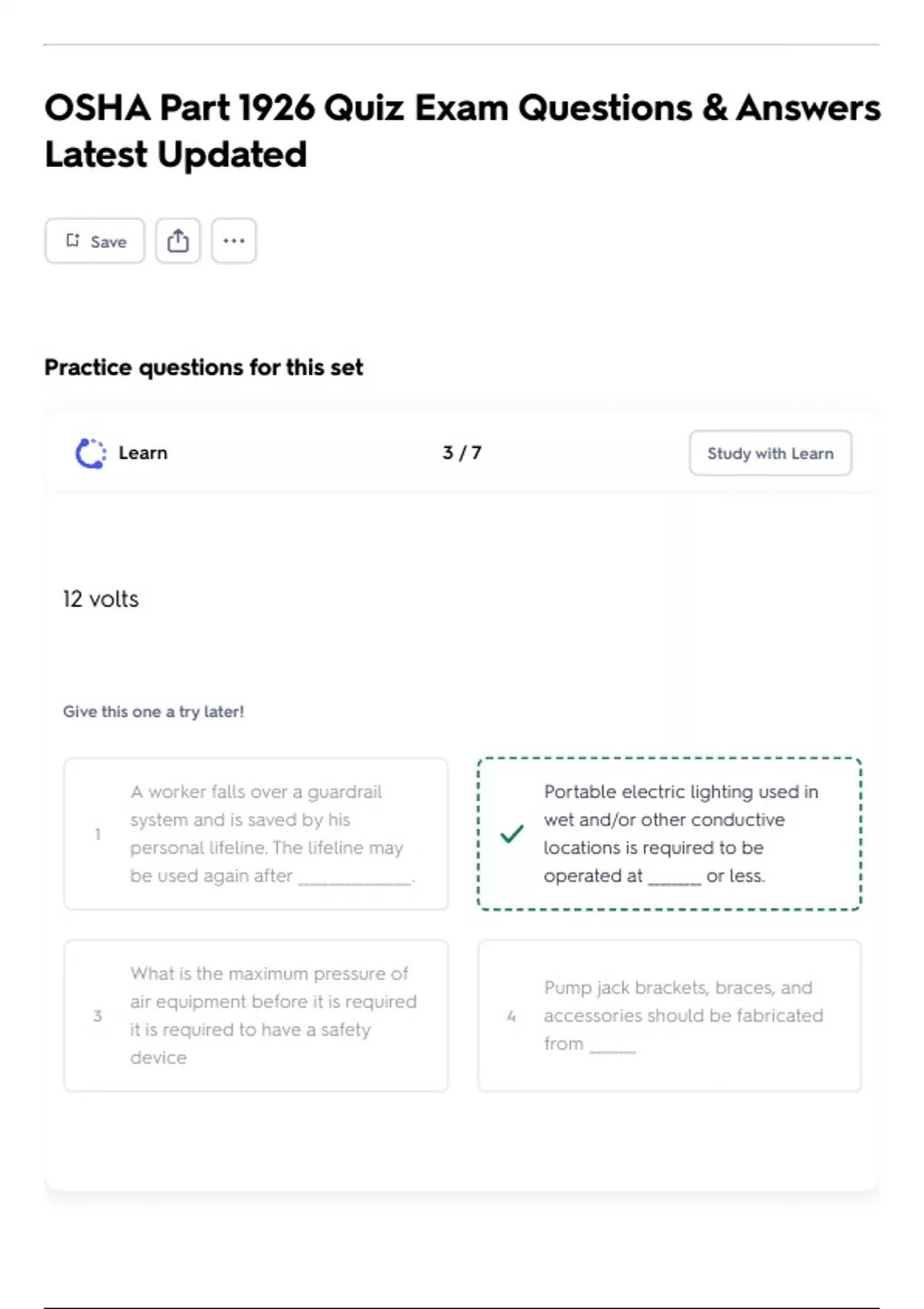 OSHA Part 1926 Quiz Exam Questions & Answers