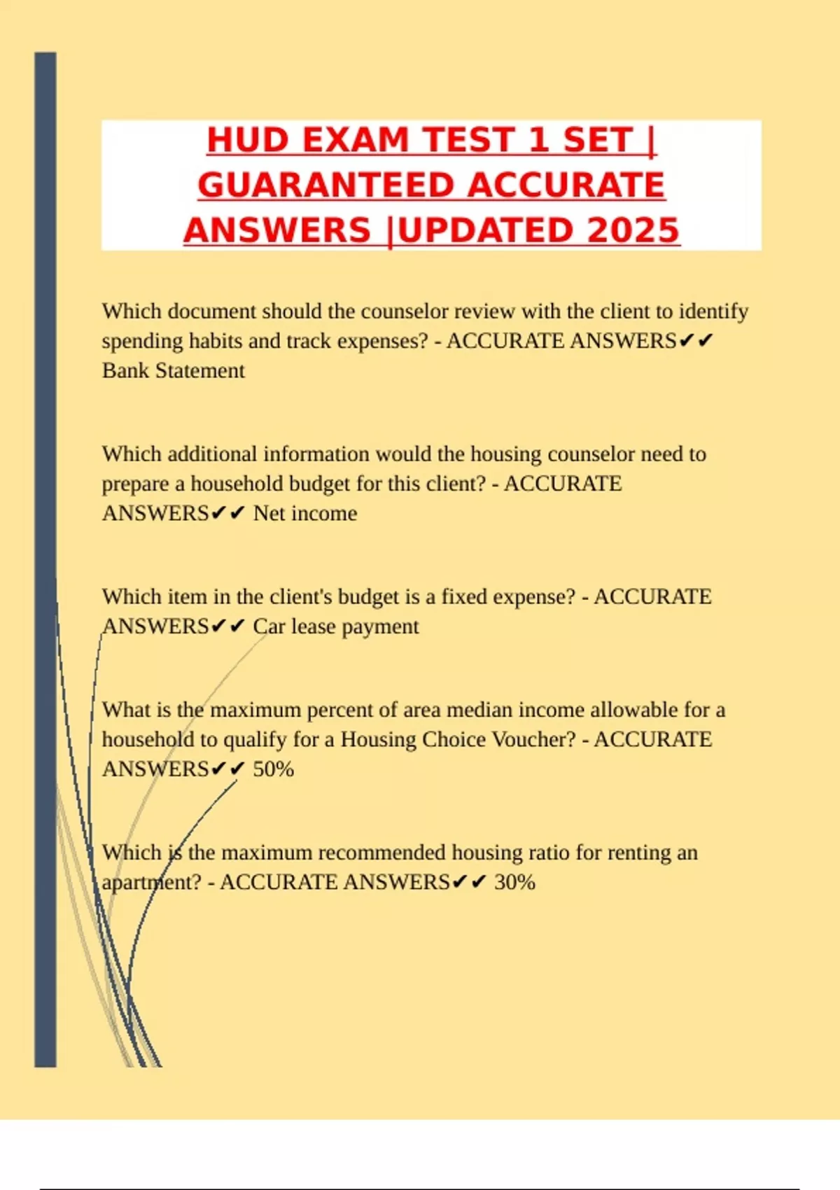 HUD EXAM TEST 1 SET |GUARANTEED ACCURATE ANSWERS |UPDATED 2025