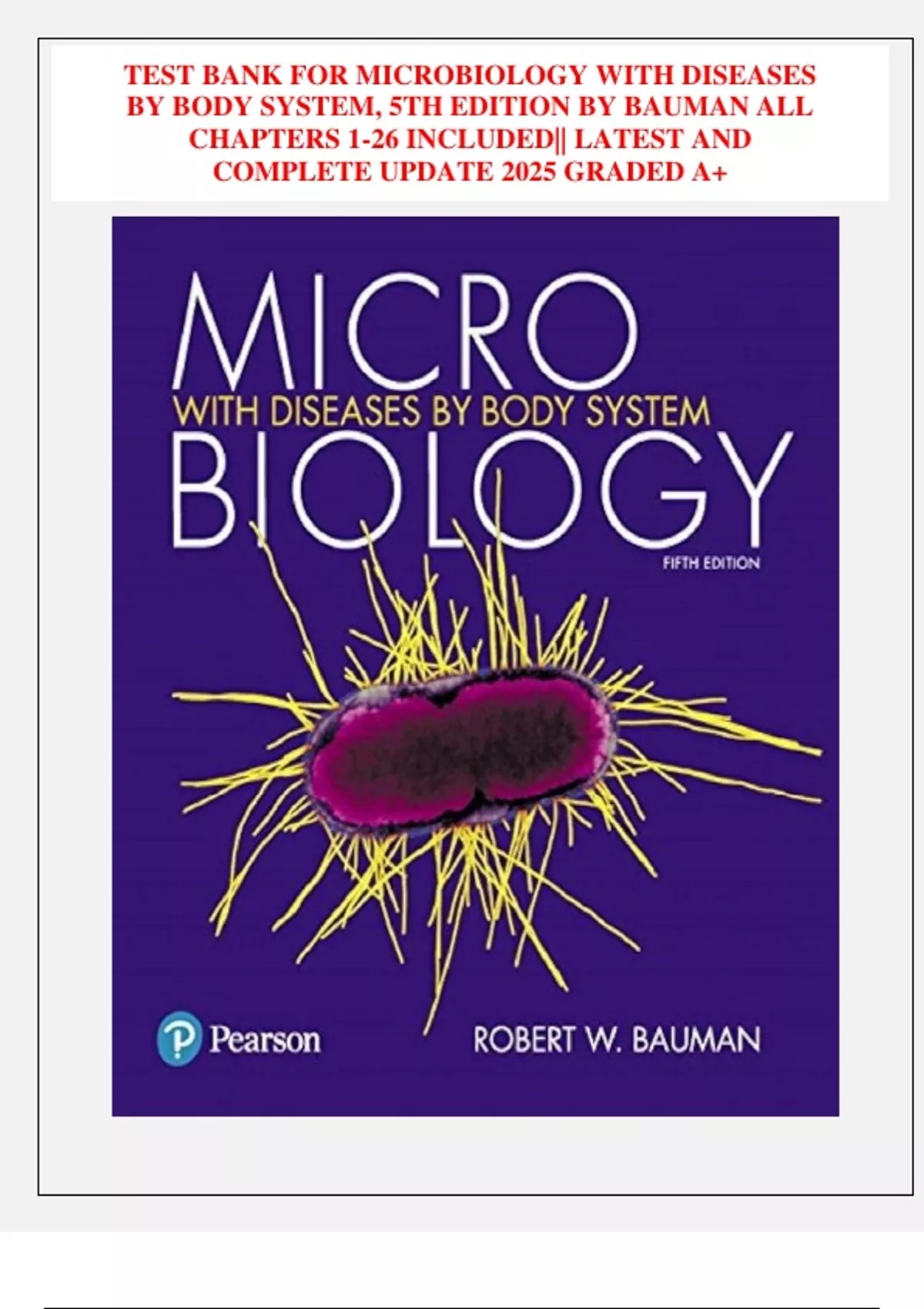 TESTBANK FOR MICROBIOLOGY WITH DISEASES BY BODY SYSTEM, 5TH EDITION BY BAUMAN ALL CHAPTERS 1-26 INCLUDED|| LATEST AND COMPLETE UPDATE 2025 GRADED A+