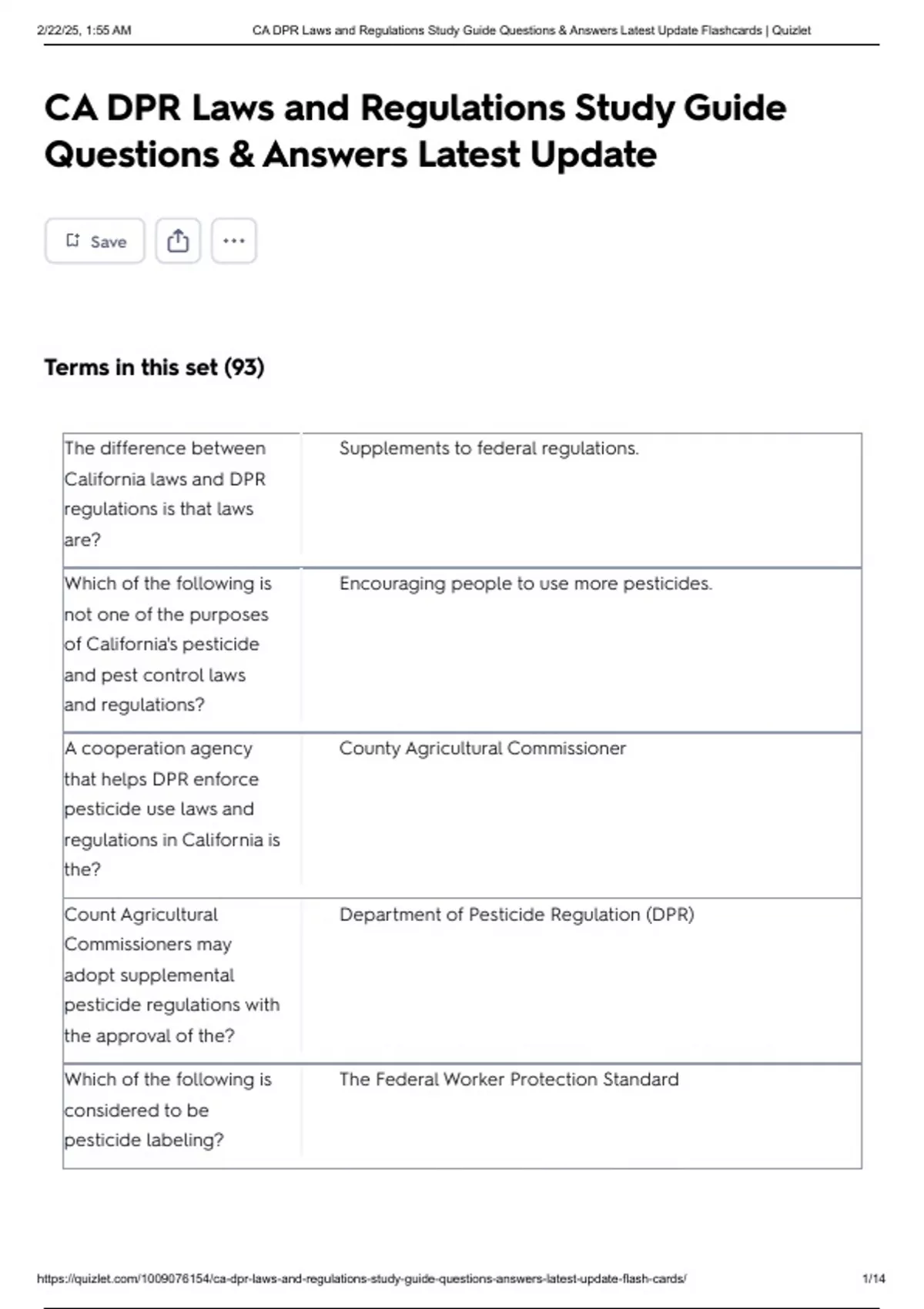 , 2/22/25, 1:55 AM CA DPR Laws and Regulations Study Guide Questions & Answers Latest Update Flashcards | Quizlet