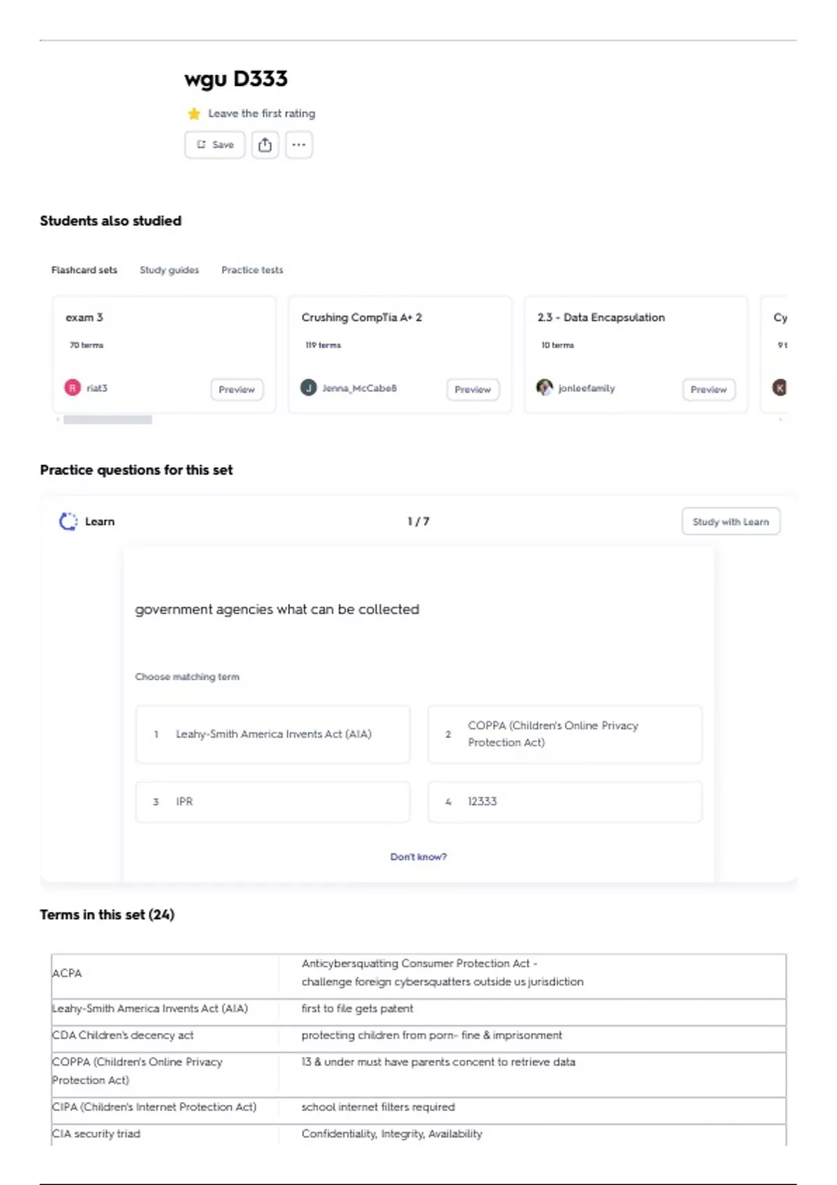 Flashcard sets Study guides Practice tests