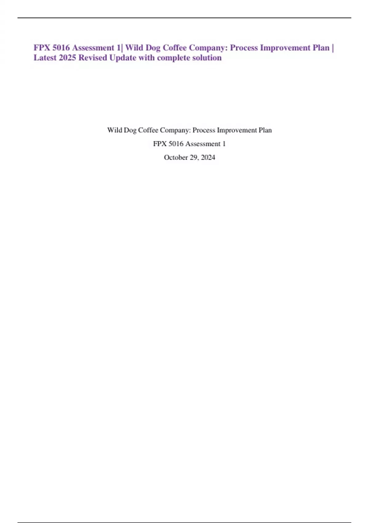 FPX 5016 Assessment 1| Wild Dog Coffee Company: Process Improvement Plan | Latest 2025 Revised Update with complete solution