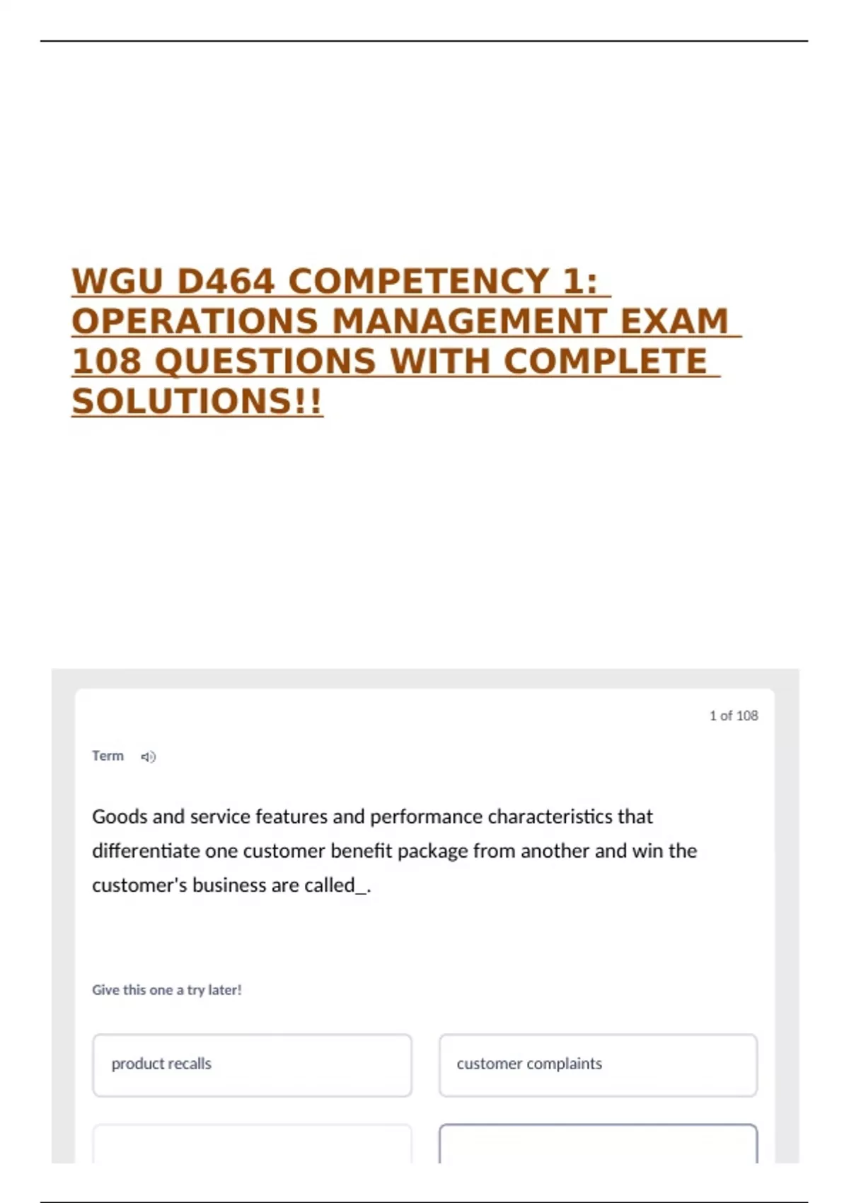 WGU D464 COMPETENCY 1: OPERATIONS MANAGEMENT EXAM 108 QUESTIONS WITH COMPLETE SOLUTIONS!!
