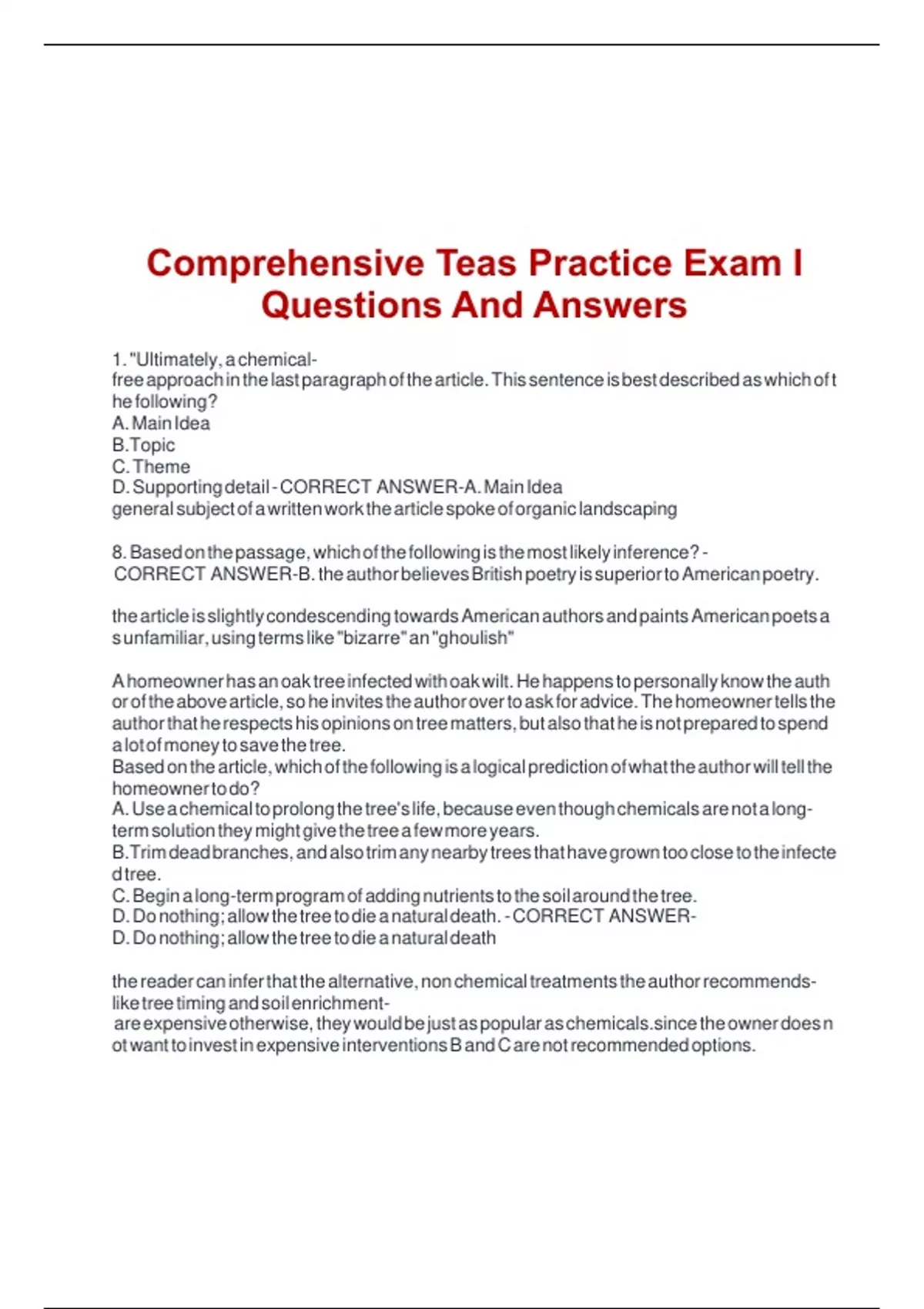 Comprehensive Teas Practice Exam I Questions And Answers Comprehensive Teas Practice Exam I Questions And Answers Comprehensive Teas Practice Exam I Questions And Answers