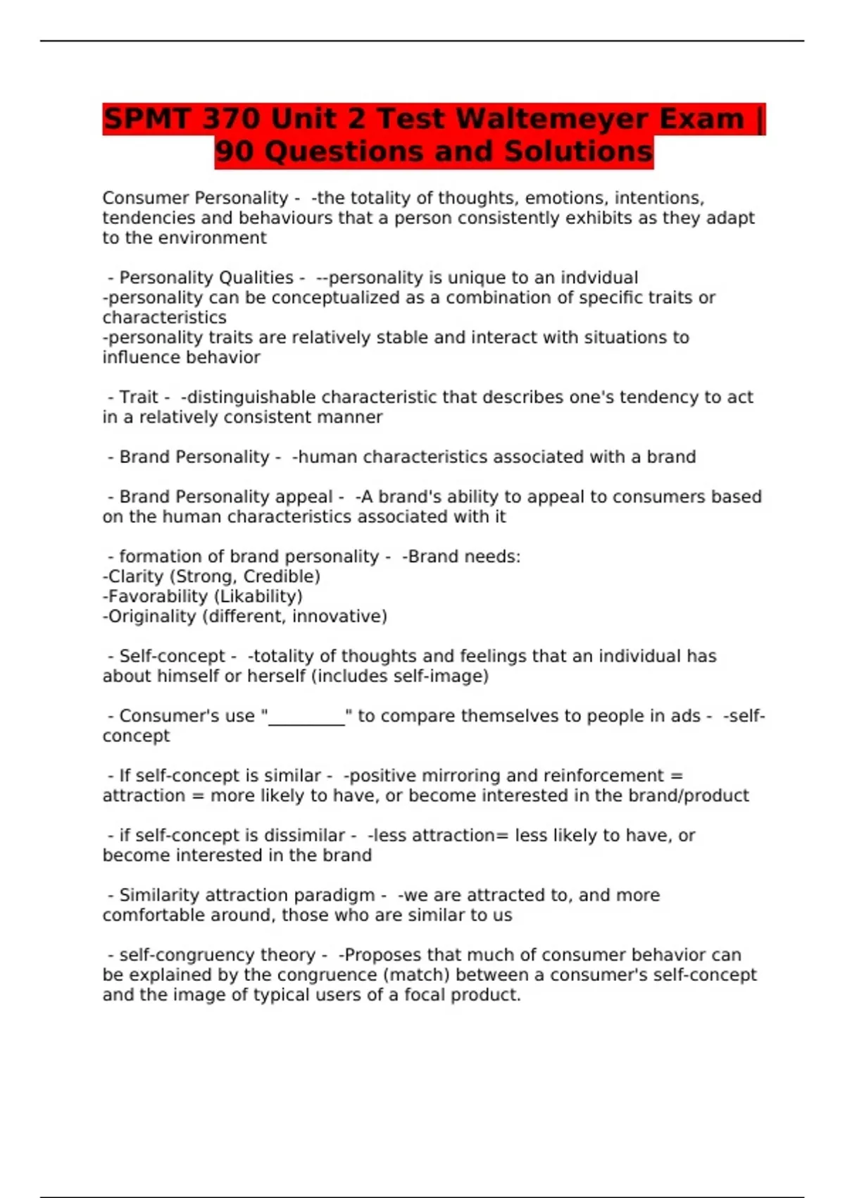 SPMT 370 Unit 2 Test Waltemeyer Exam |90 Questions and Solutions