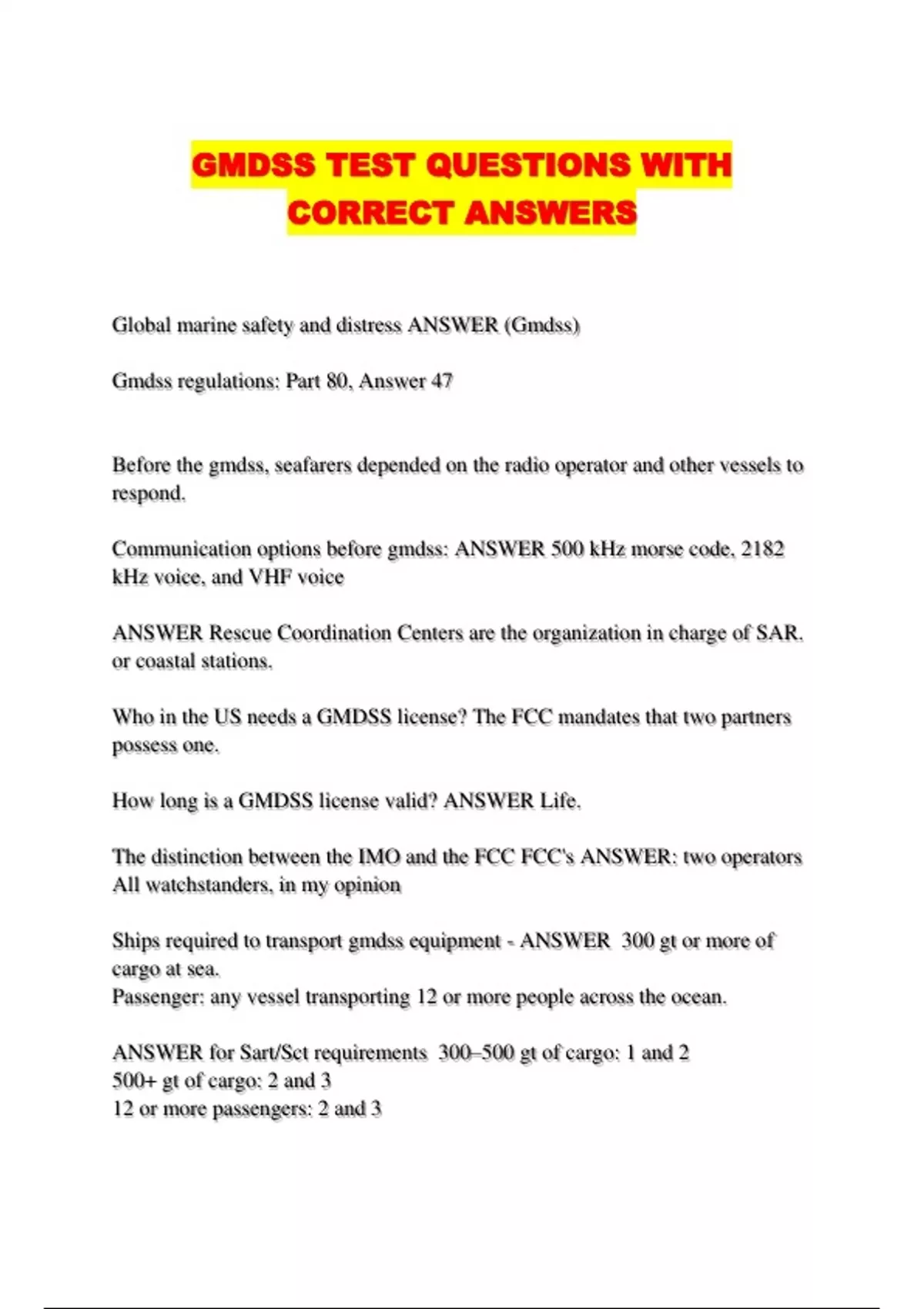 Ships required to transport gmdss equipment - ANSWER 300 gt or more of