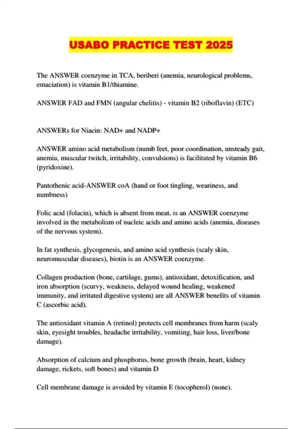 The ANSWER coenzyme in TCA, beriberi (anemia, neurological problems,