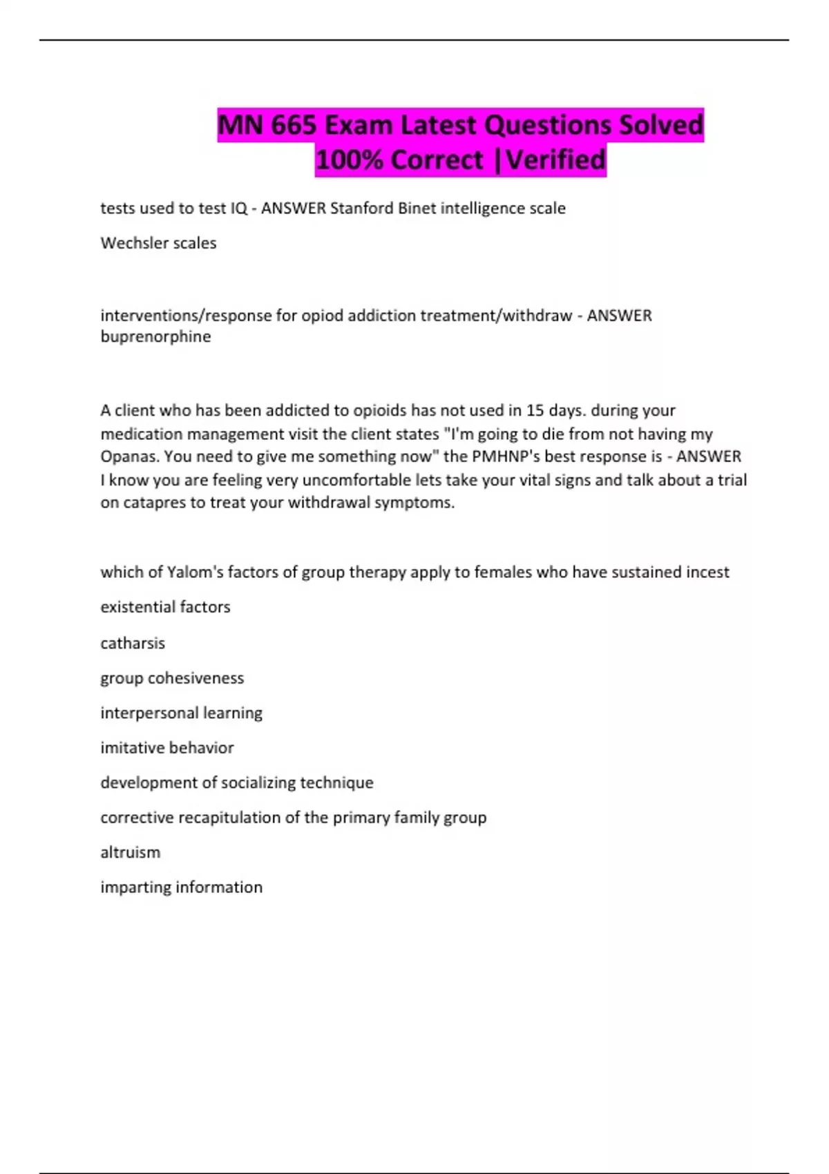 MN 665 Exam Latest Questions Solved