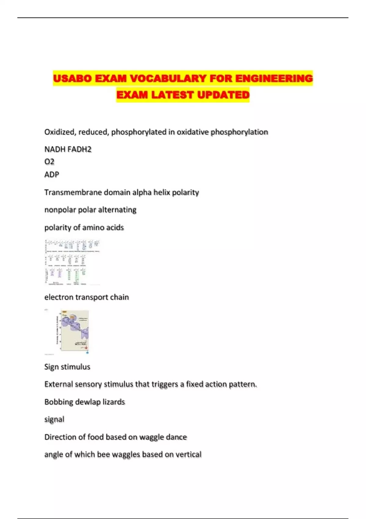 USABO EXAM VOCABULARY FOR ENGINEERING