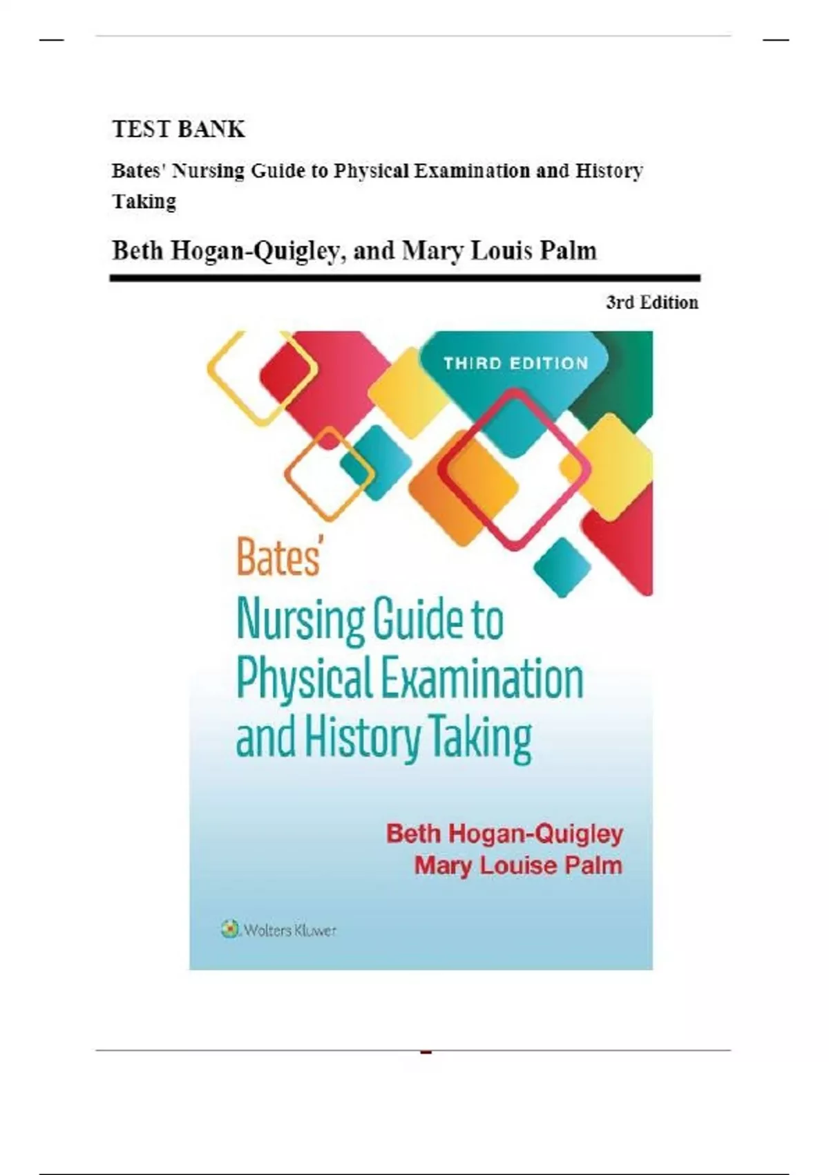 TEST BANK For Bates' Nursing Guide to Physical Examination and History Taking,{ 3rd Edition} By Beth Hogan-Quigley | All Chapters Included | Elaborated Answers | Latest 2024