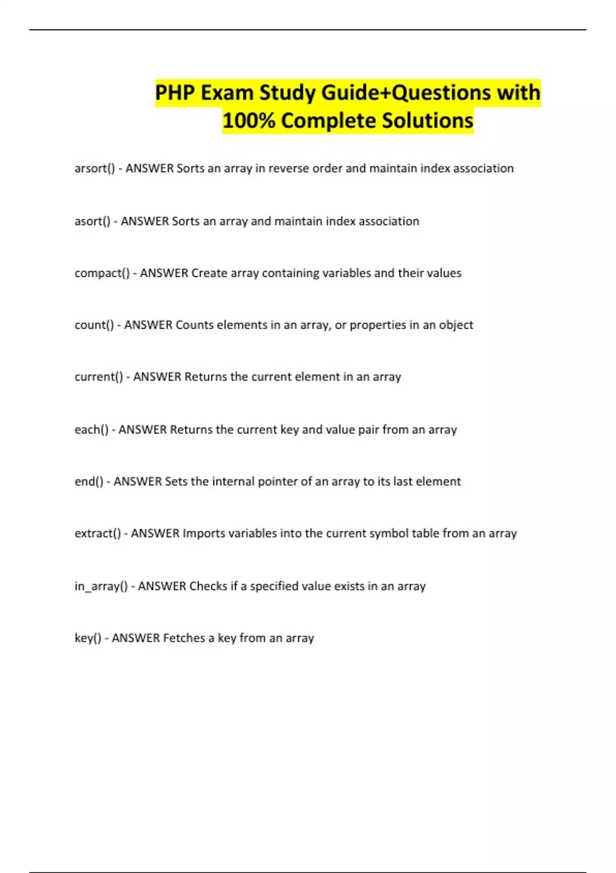 PHP Exam Study Guide+Questions with 100% Complete Solutions