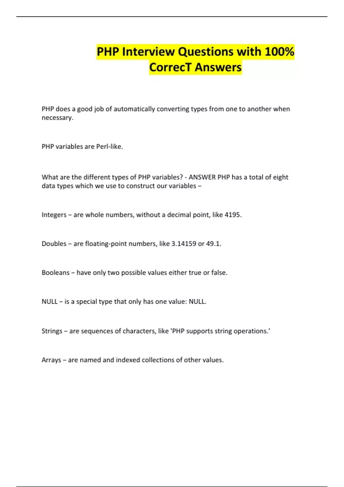 What are the different types of PHP variables? - ANSWER PHP has a total of eight