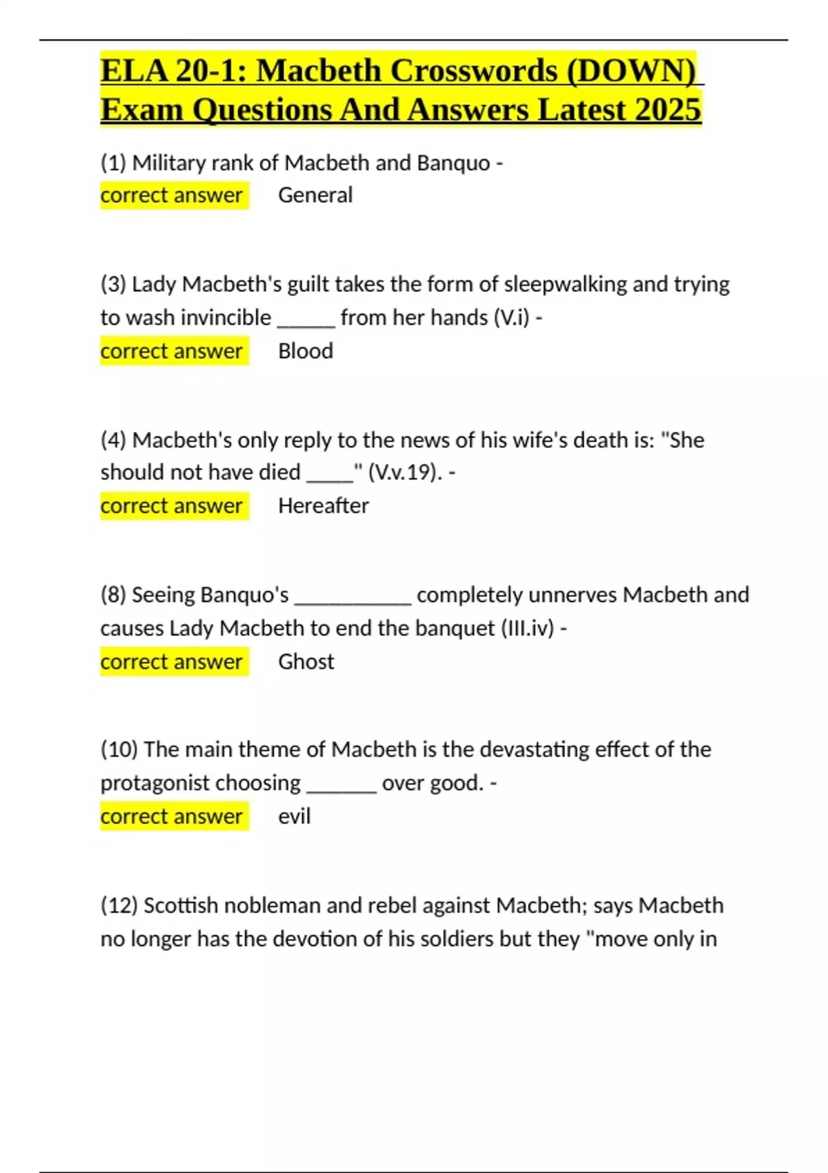 , ELA 20-1: Macbeth Crosswords (DOWN)
