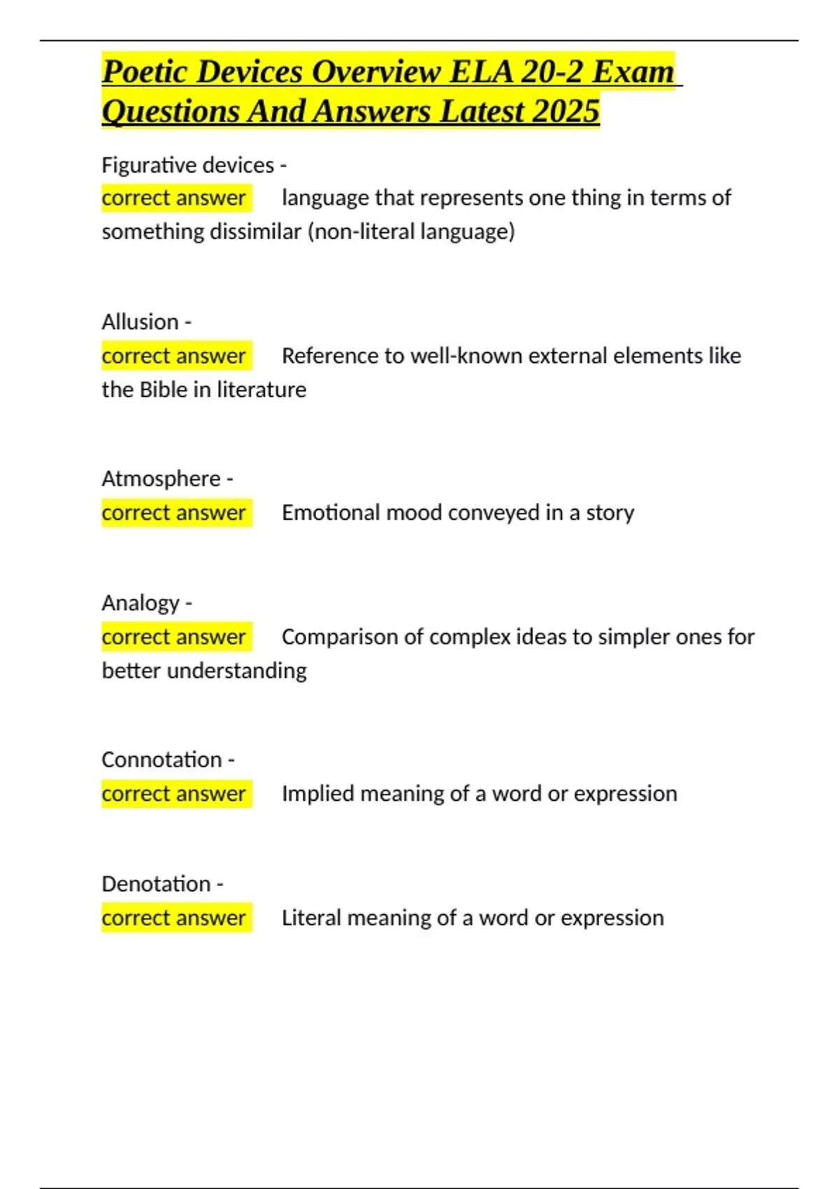 Poetic Devices Overview ELA 20-2 Exam Questions And Answers Latest 2025.docx