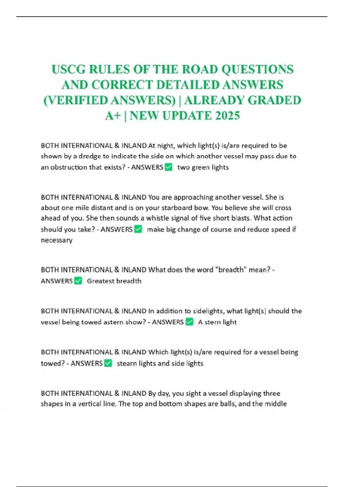 USCG (United States Coast Guard) BUNDLED ACTUAL EXAM QUESTIONS AND CORRECT DETAILED ANSWERS (VERIFIED ANSWERS) | ALREADY SCORED A+ | NEW UPDATE 2025