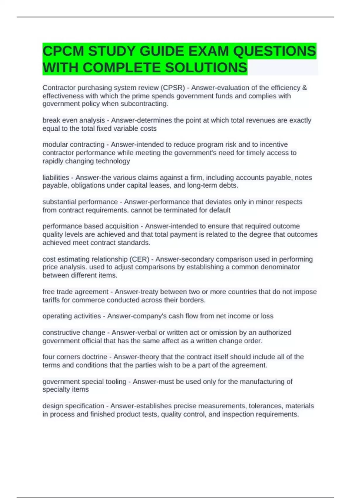CPCM STUDY GUIDE EXAM QUESTIONS WITH COMPLETE SOLUTIONS