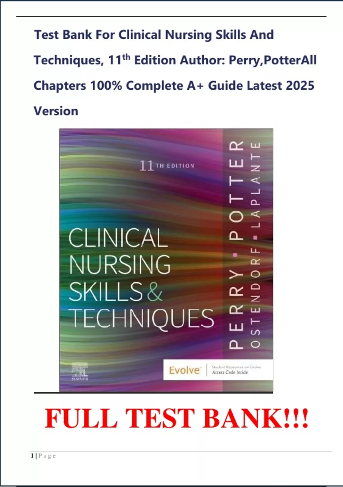 Test Bank For Clinical Nursing Skills And Techniques, 11th Edition Author: Perry,PotterAll Chapters 100% Complete A+ Guide Latest 2025 Version