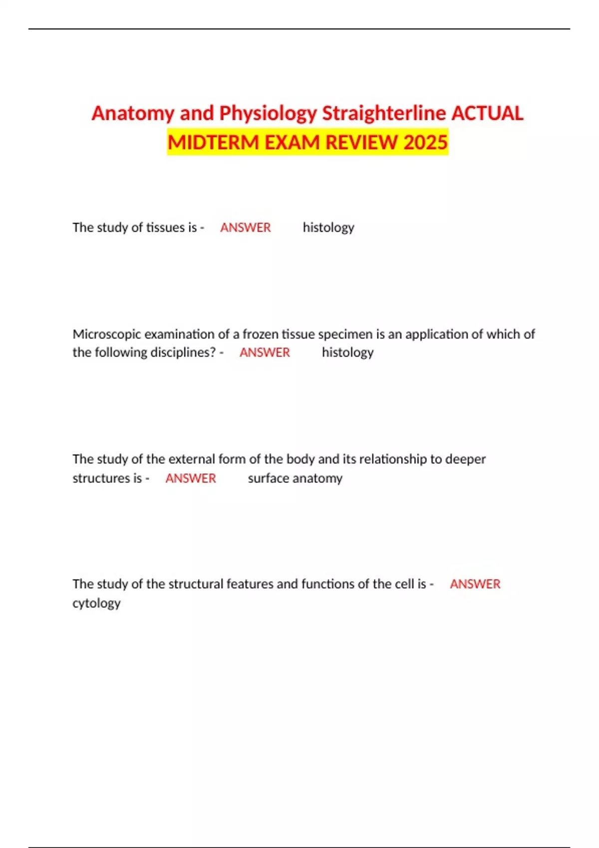 Anatomy and Physiology Straighterline ACTUAL